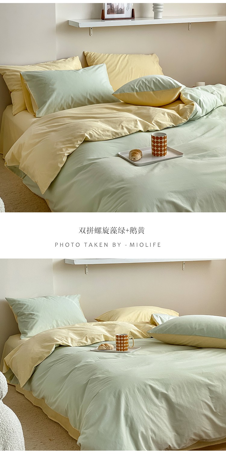 双拼全棉水洗棉纯棉四件套ins简约北欧纯色床笠款套件,双拼白+浅蓝,双拼白+薇薇紫,双拼海蓝+浅蓝,双拼琥珀+鹅黄,双拼焦糖+奶茶,双拼螺旋藻绿+鹅黄,双拼奶茶+鹅黄,双拼牛油果+鹅黄,双拼浅蓝+鹅黄,双拼树莓红+杏仁白,双拼水绿+螺旋藻绿,双拼豌豆青+杏仁白,双拼杏仁白+螺旋藻绿,薇薇紫+杏仁白,浅灰+杏仁白,双拼藏青+浅灰,双拼花青灰+浅灰,双拼霁色+浅灰