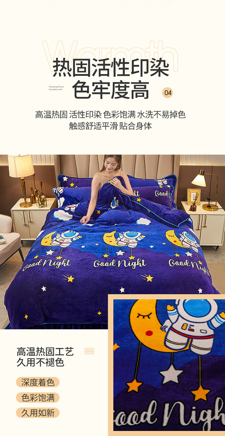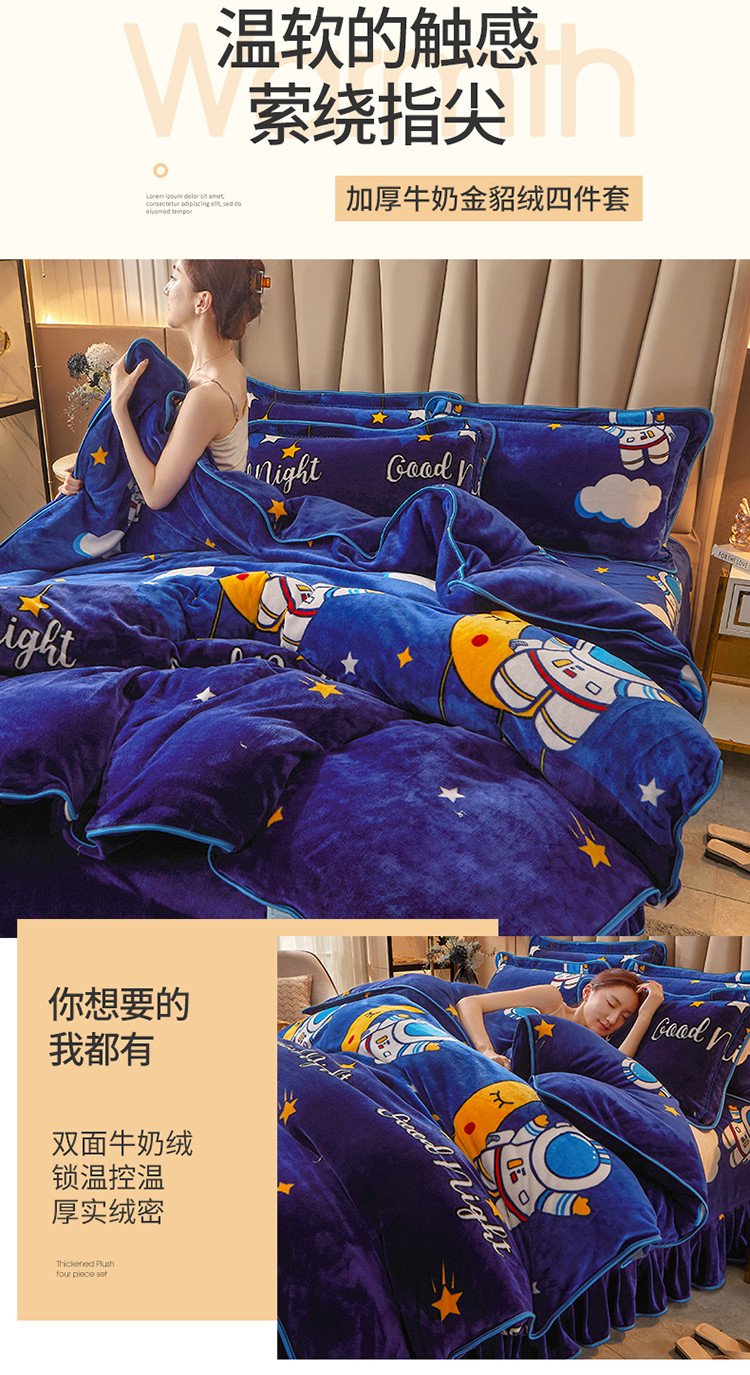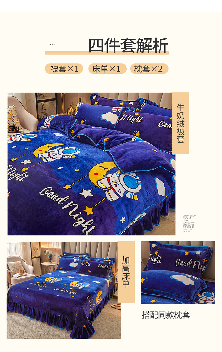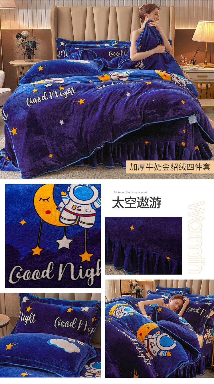 商品名称:贝诗梦 2022新款加厚牛奶金貂绒四件套 太空遨游
