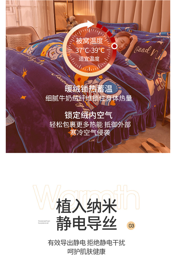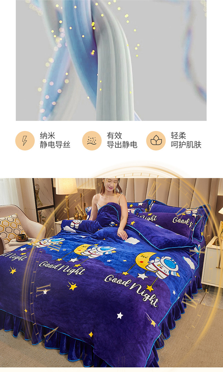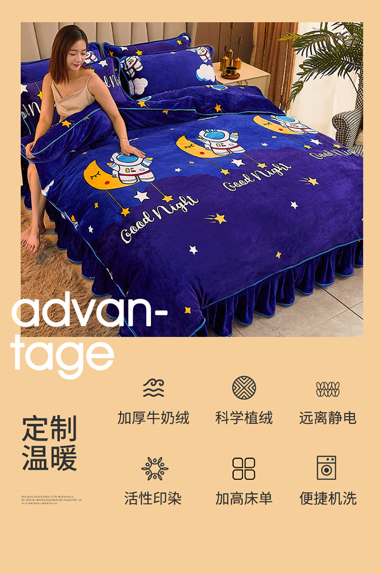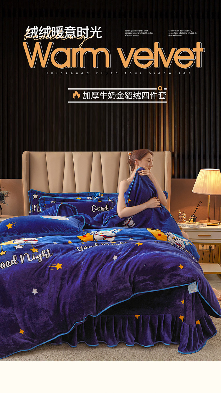 商品名称:贝诗梦 2022新款加厚牛奶金貂绒四件套 太空遨游