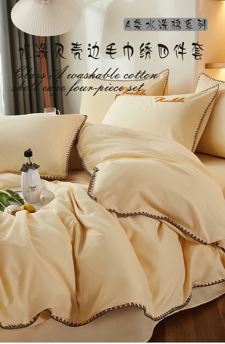 当前位置: 91家纺网 > 商品网购 > 床品套件 > 四件套 > 水洗棉四件套 > 啊雅家居 2025新款A类水洗棉贝壳边毛巾绣四件套 时尚黄