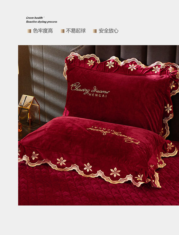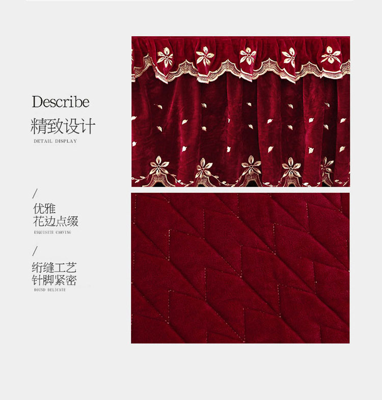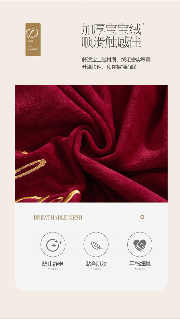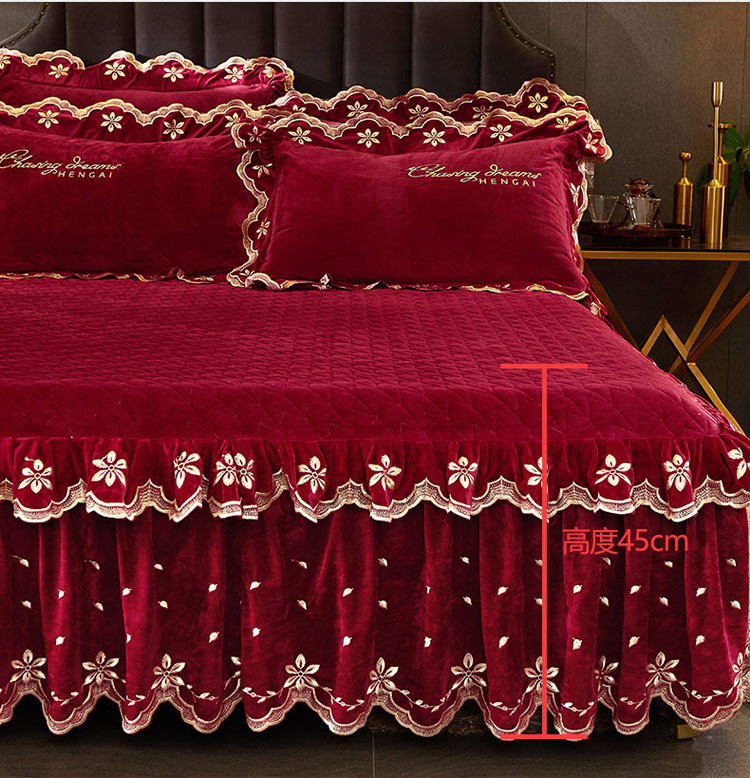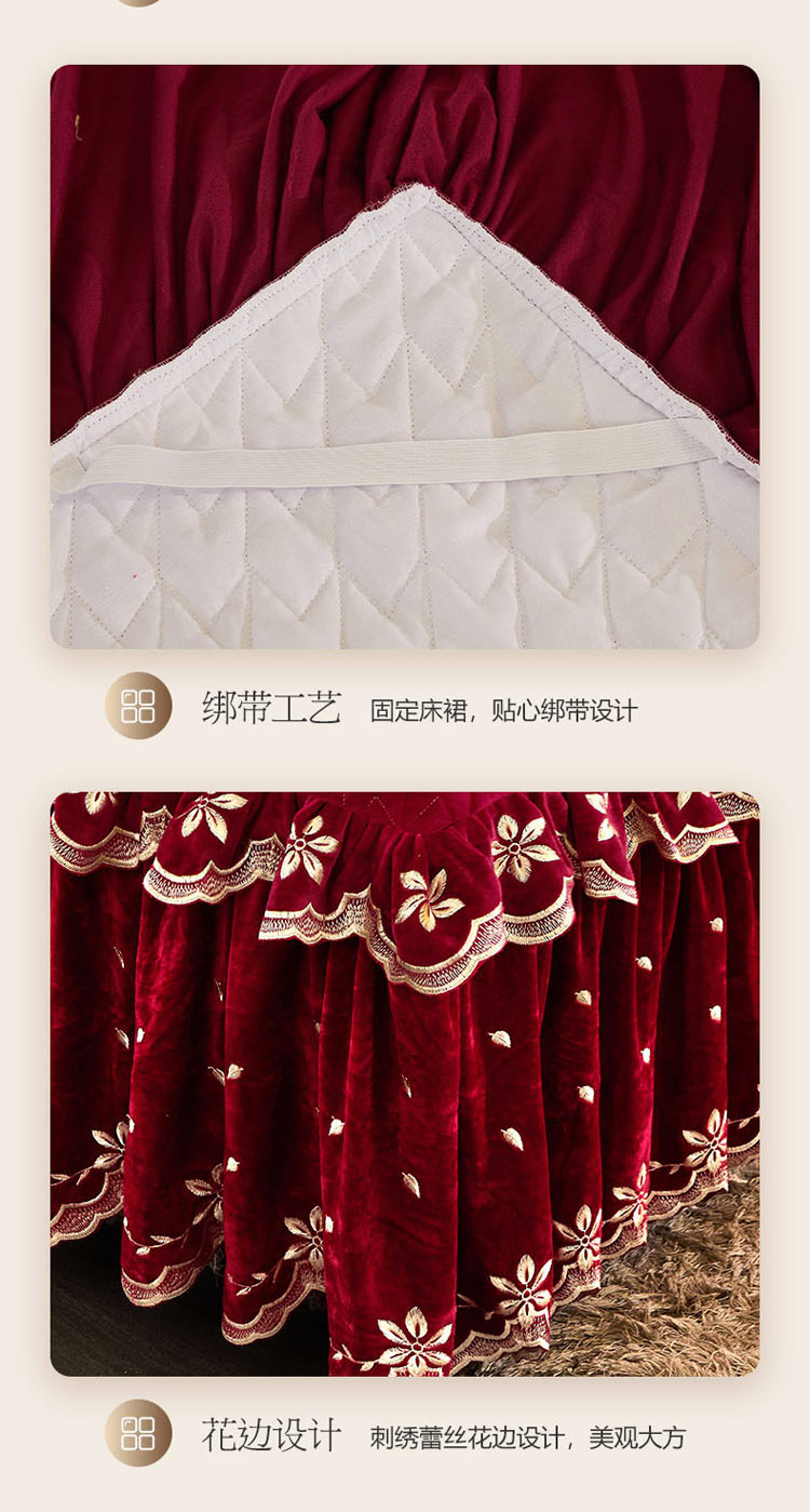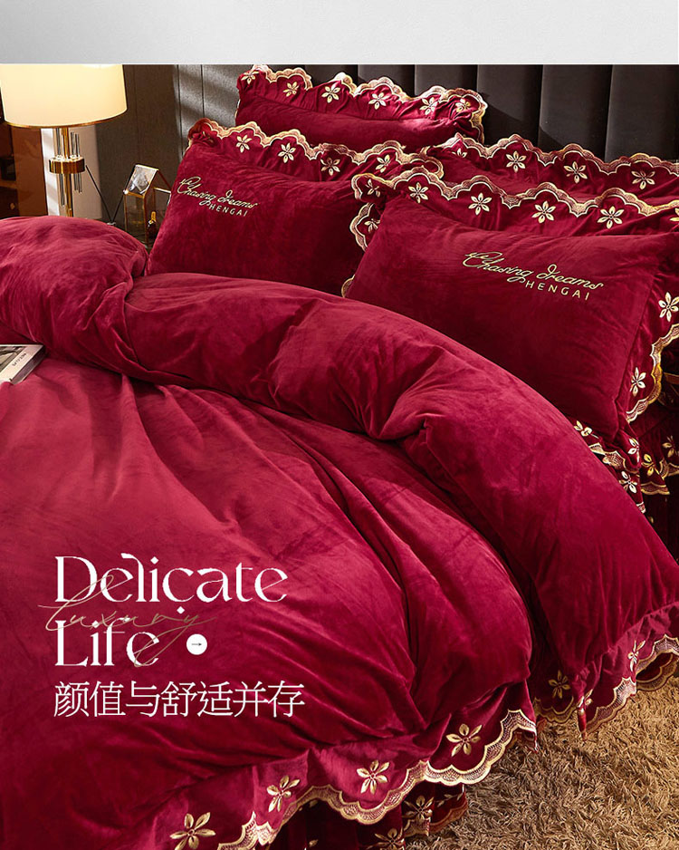 当前位置: 91家纺网 > 商品网购 > 床品套件 > 四件套 > 宝宝绒四件套 > 恒爱 2022新款秋冬轻奢宝宝绒刺绣床裙款四件套 酒红