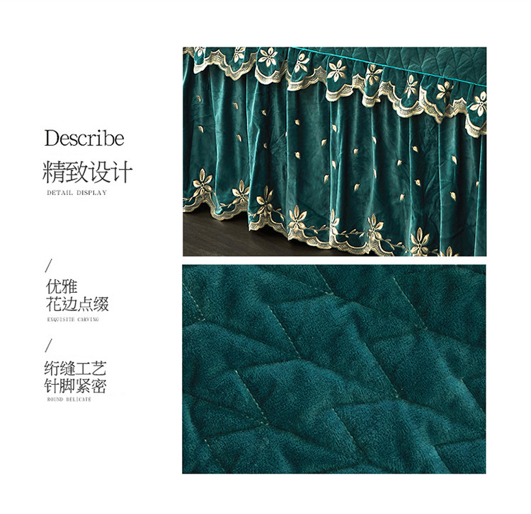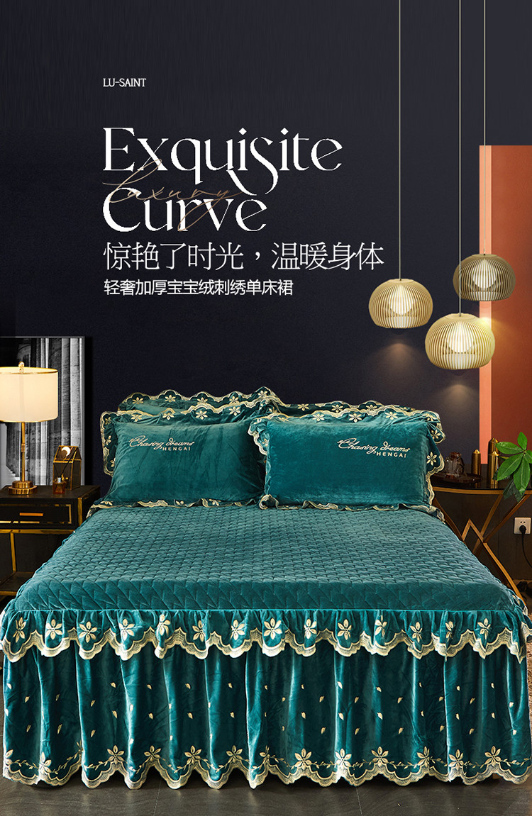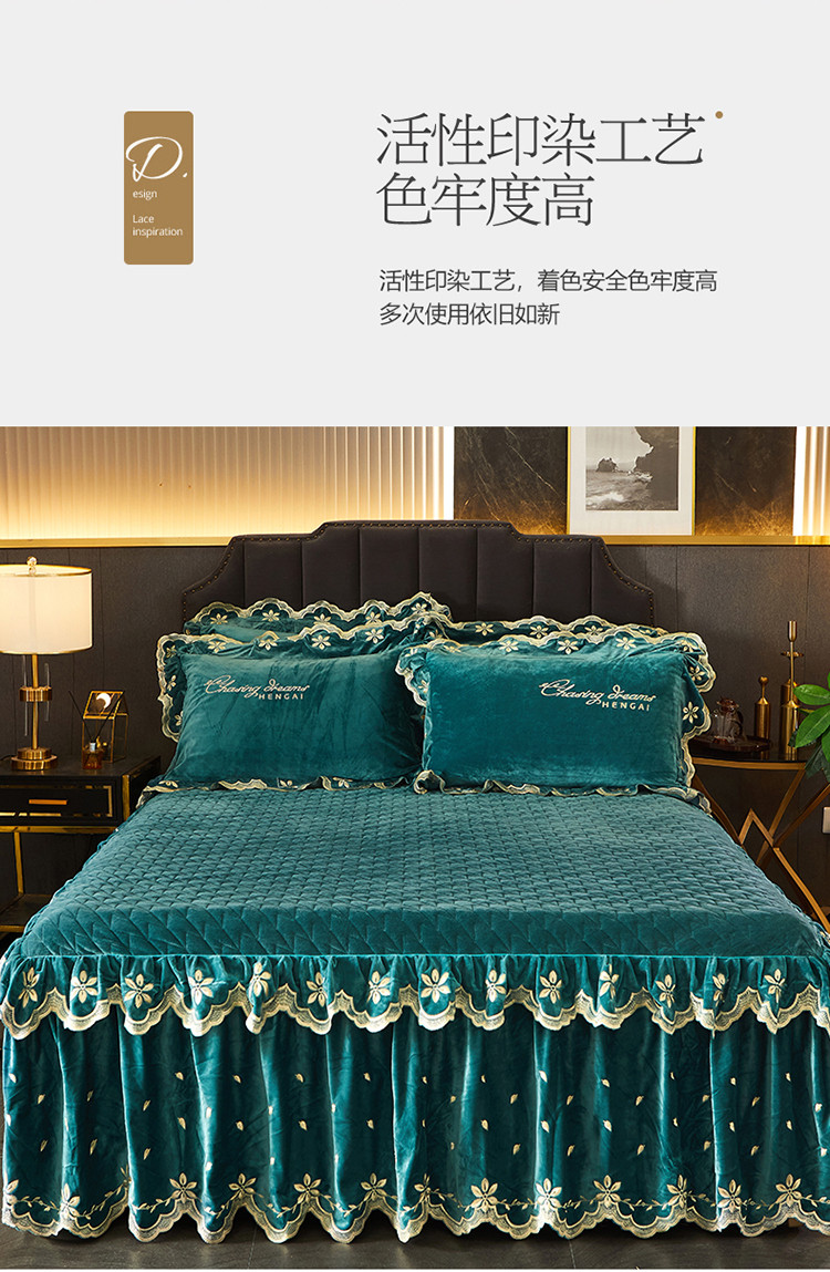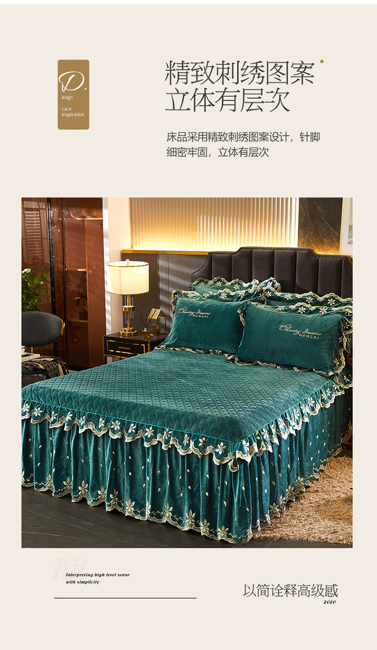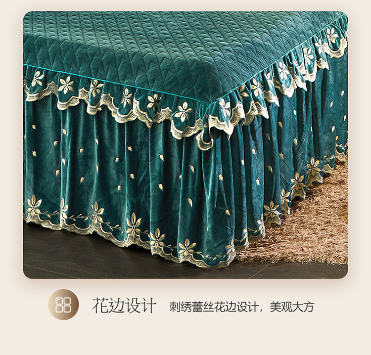 • 91家纺网 家纺一手货源 找家纺 恒爱 2022新款秋冬轻奢宝宝绒刺绣单床裙 橄榄绿