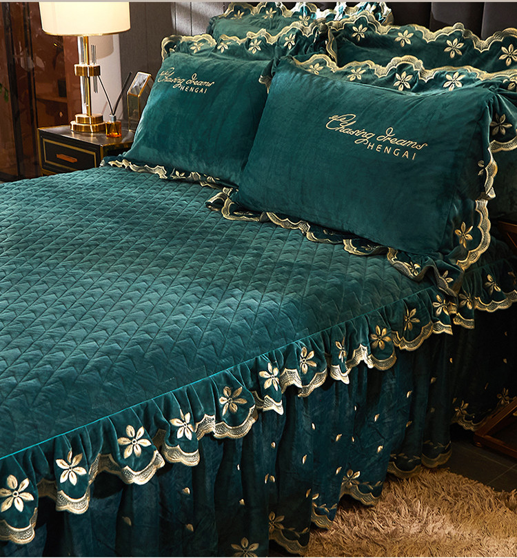 恒爱 2022新款秋冬轻奢宝宝绒刺绣单床裙 橄榄绿