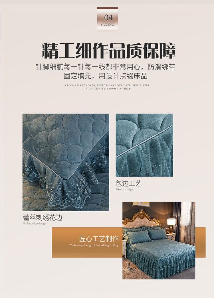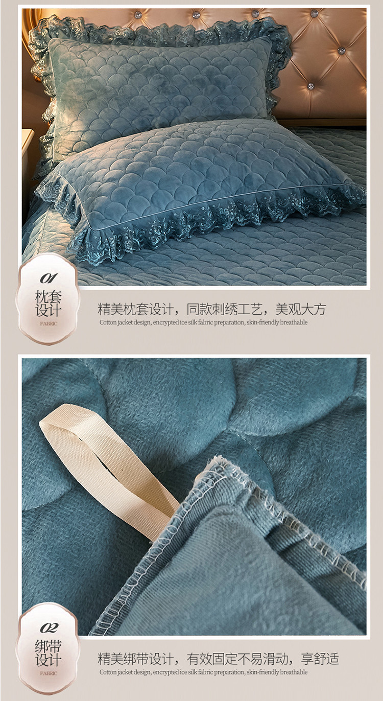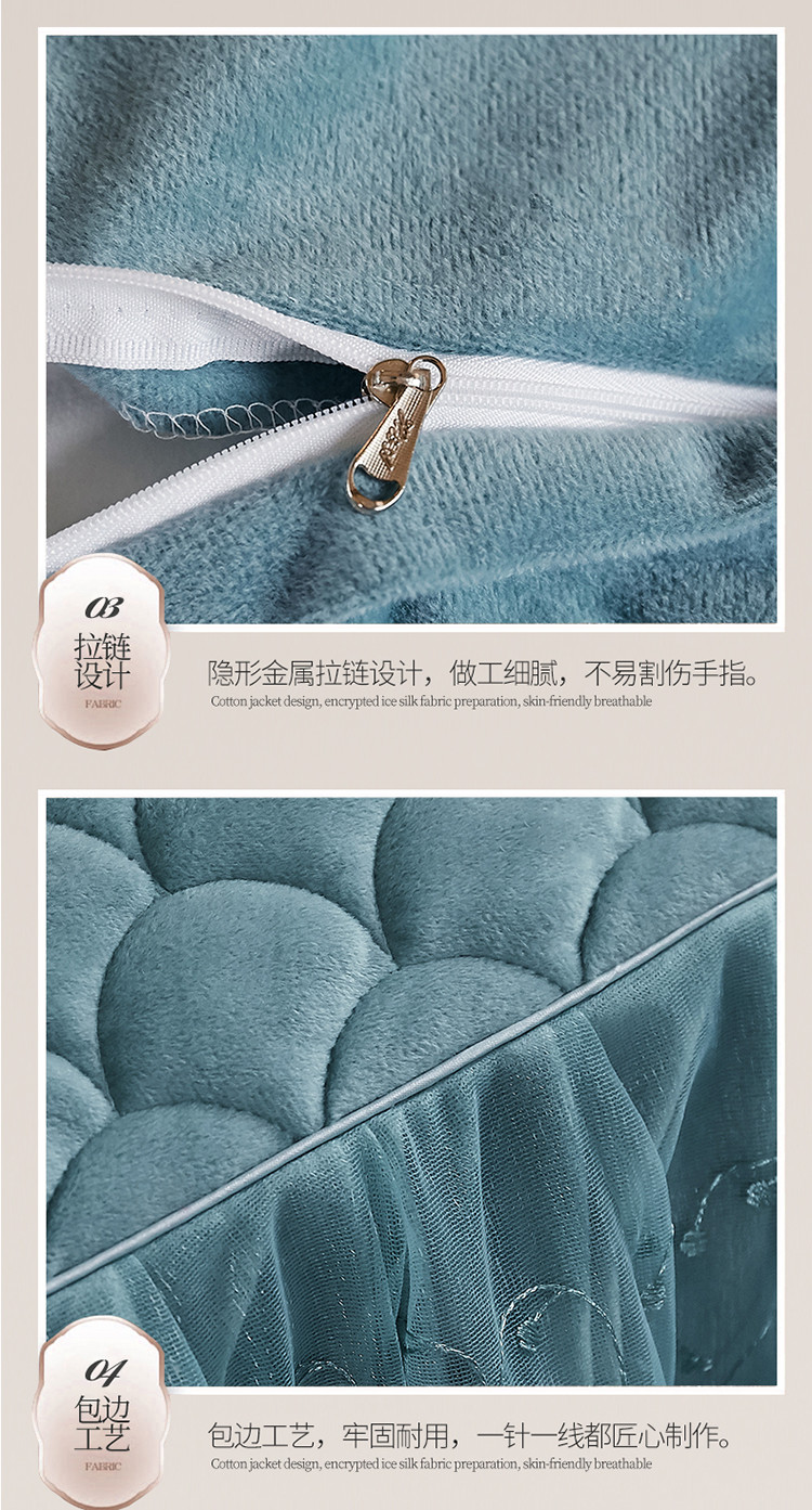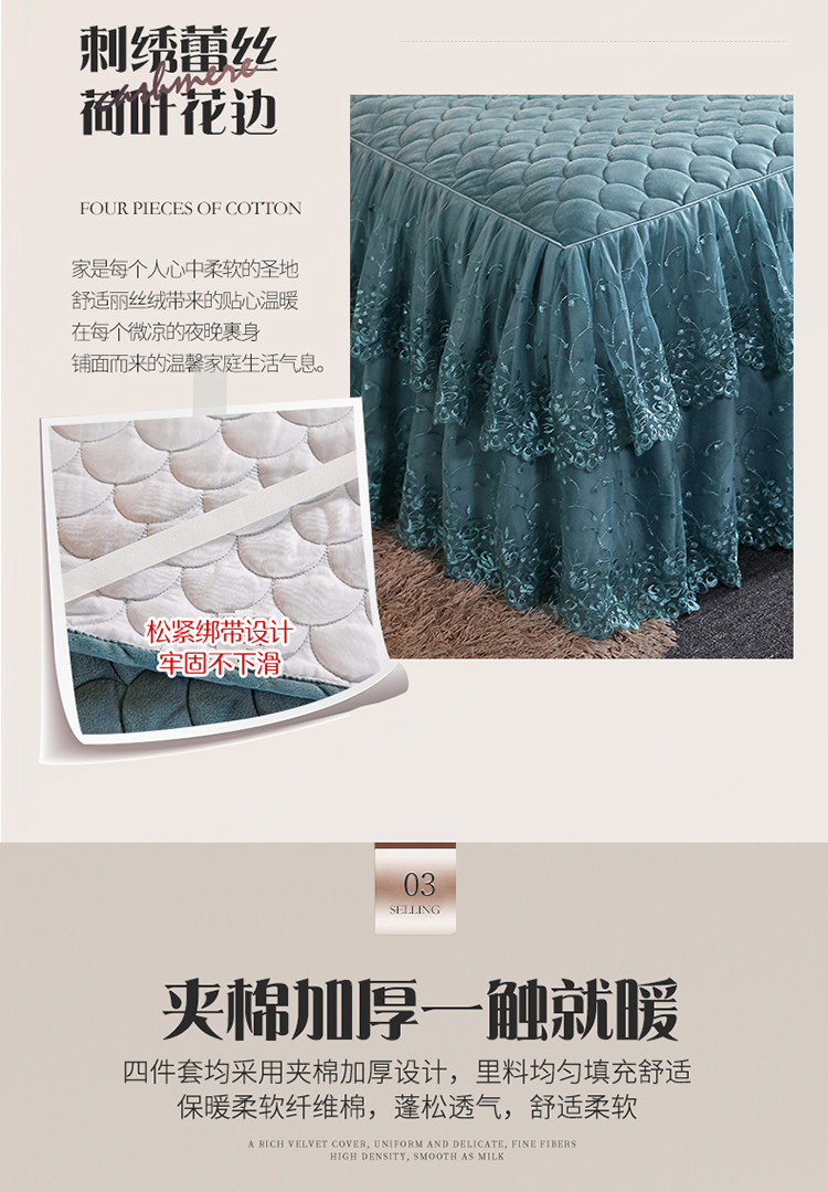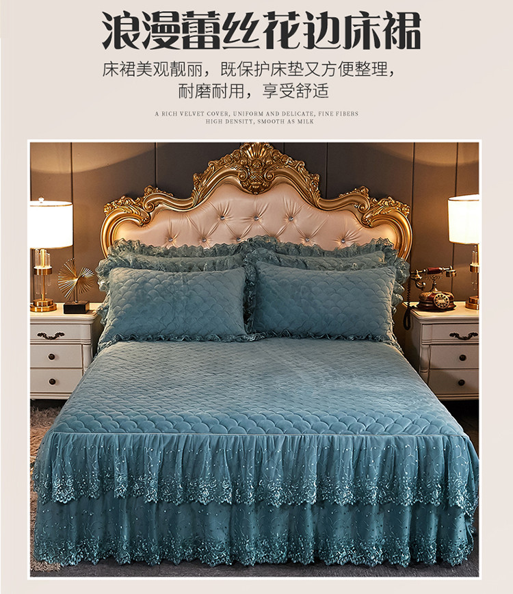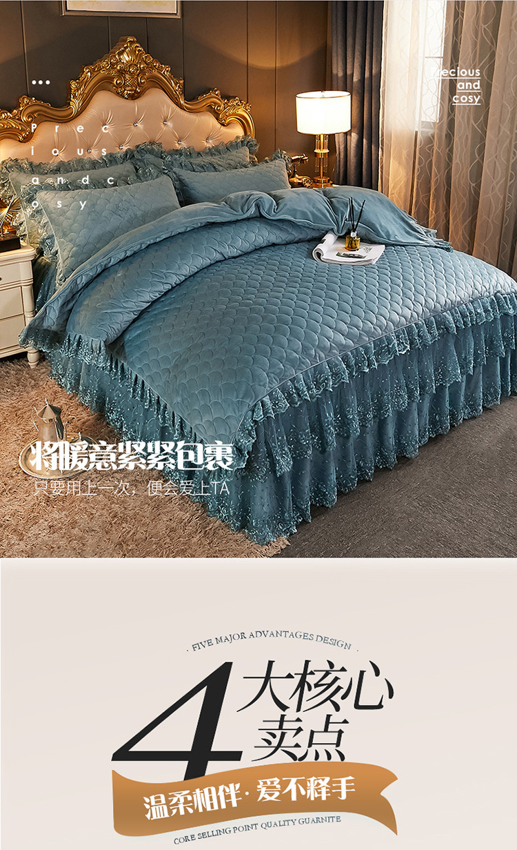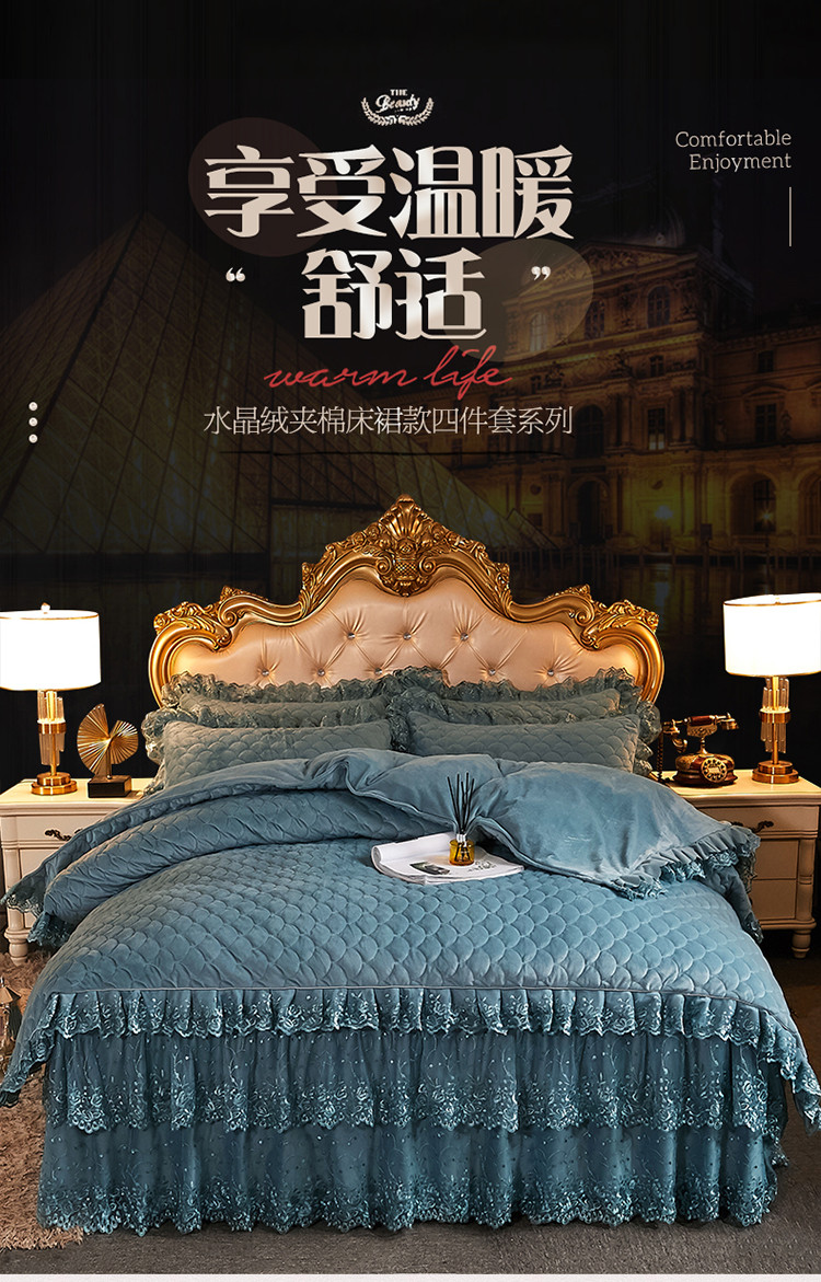 当前位置: 91家纺网 > 商品网购 > 床品套件 > 四件套 > 水晶绒四件套 > 恒爱 2022秋冬水晶绒翩翩花舞夹棉床裙四件套 孔雀绿