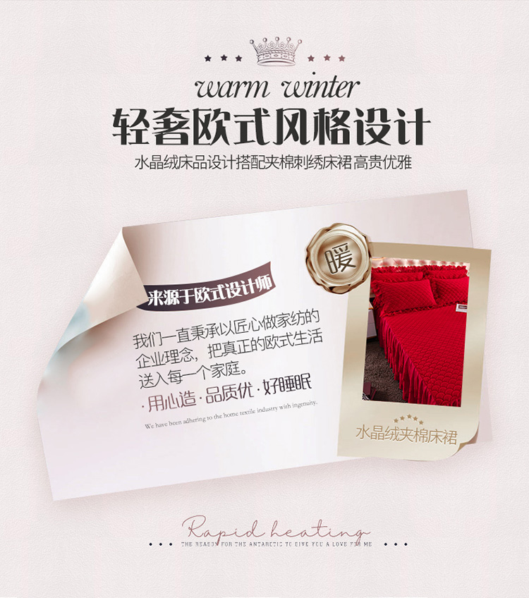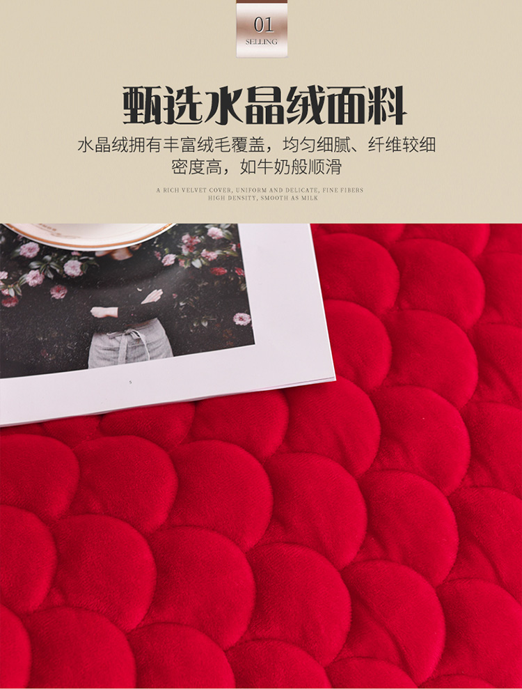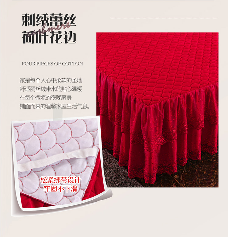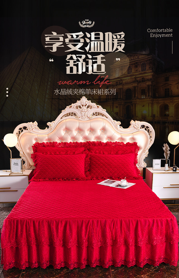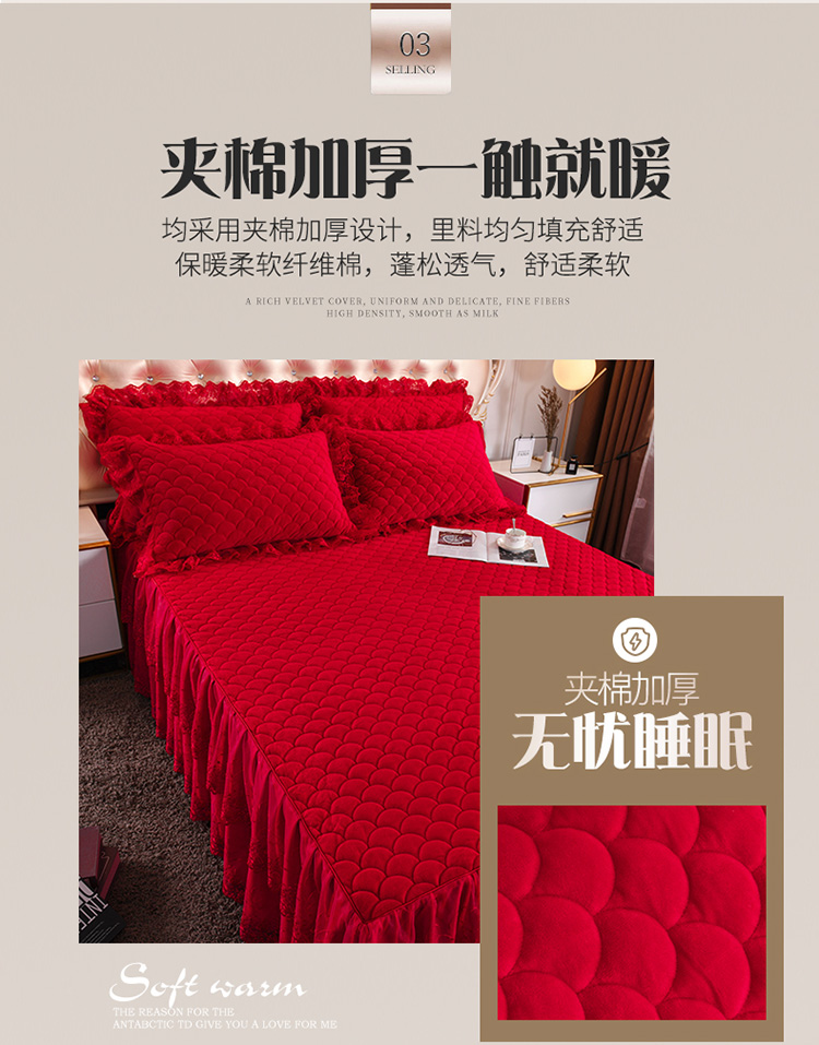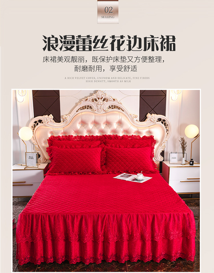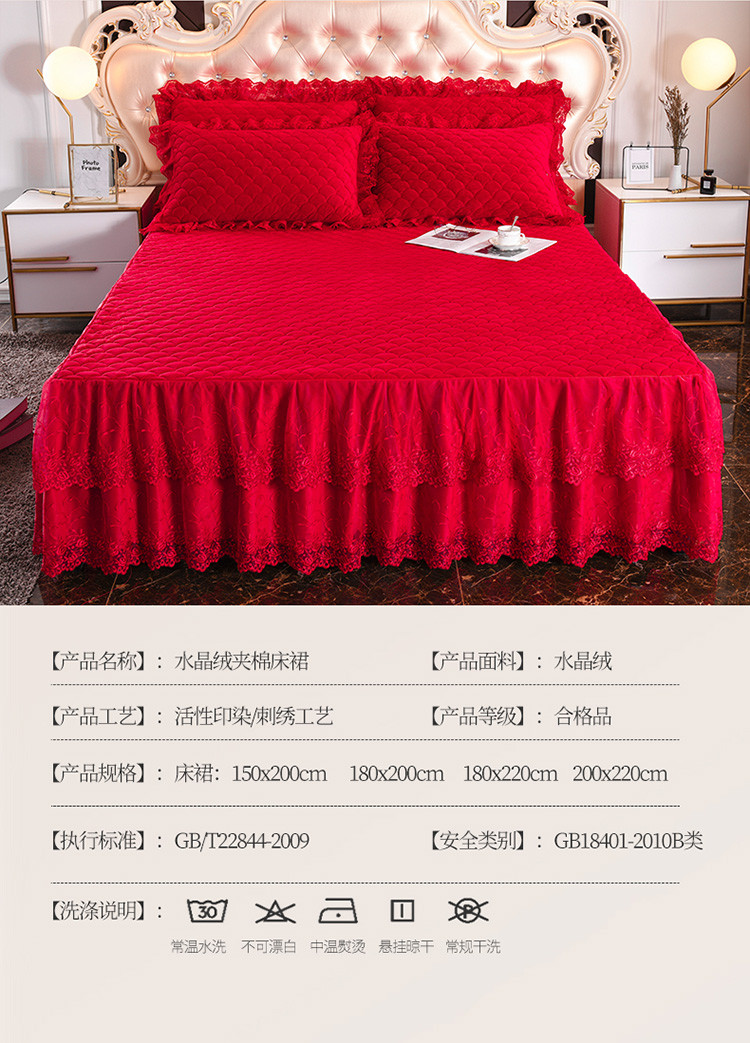 • 91家纺网 家纺一手货源 找家纺 恒爱 2022秋冬水晶绒翩翩花舞夹棉单床裙 大红色