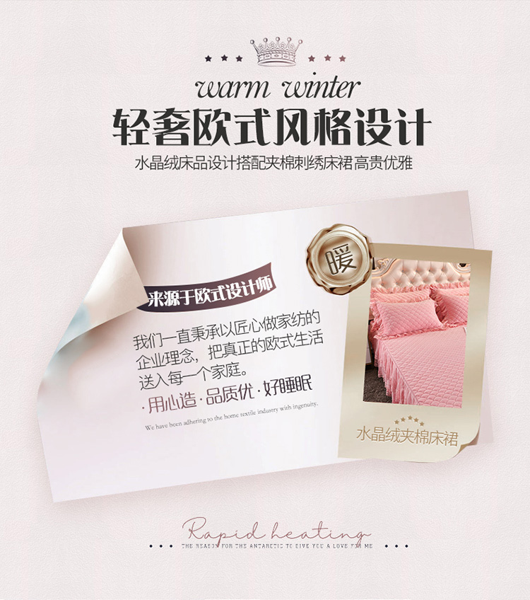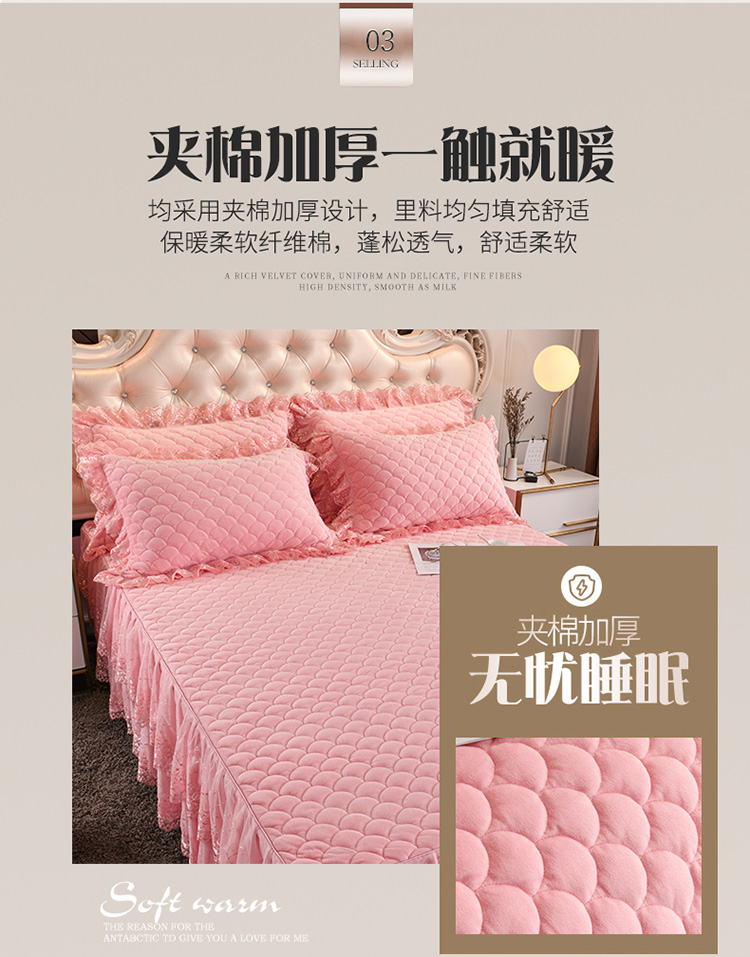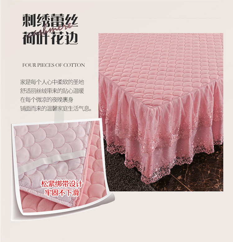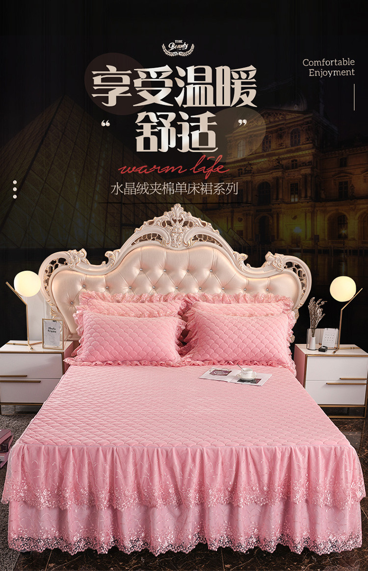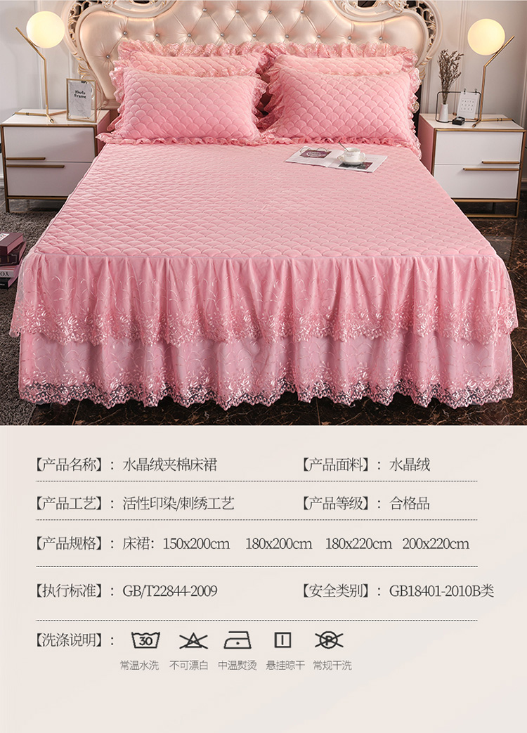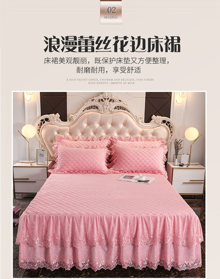 • 91家纺网 家纺一手货源 找家纺 恒爱 2022秋冬水晶绒翩翩花舞夹棉单床裙 美人玉