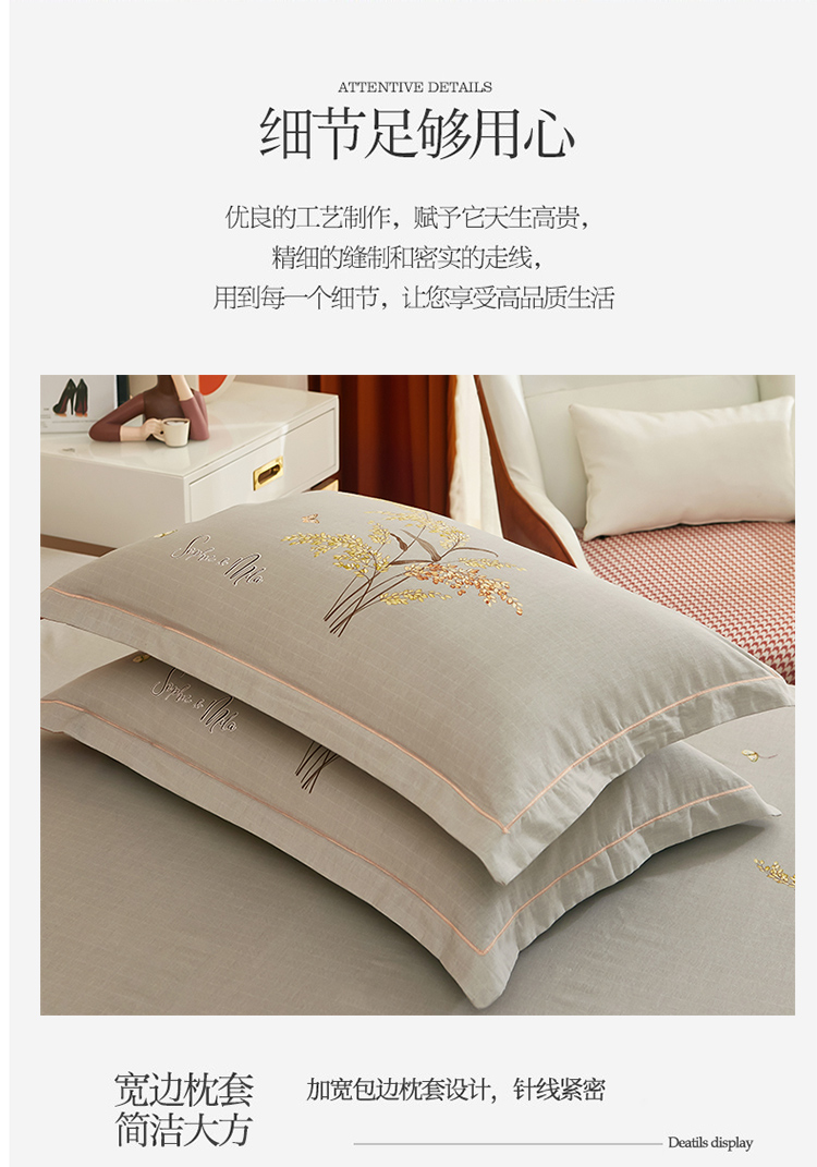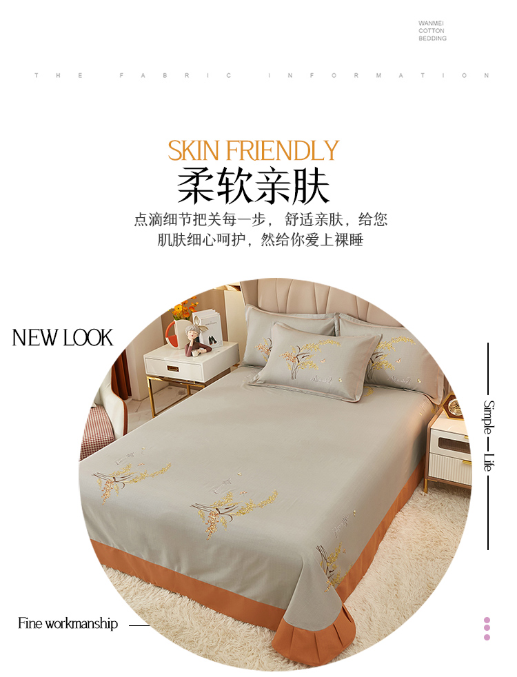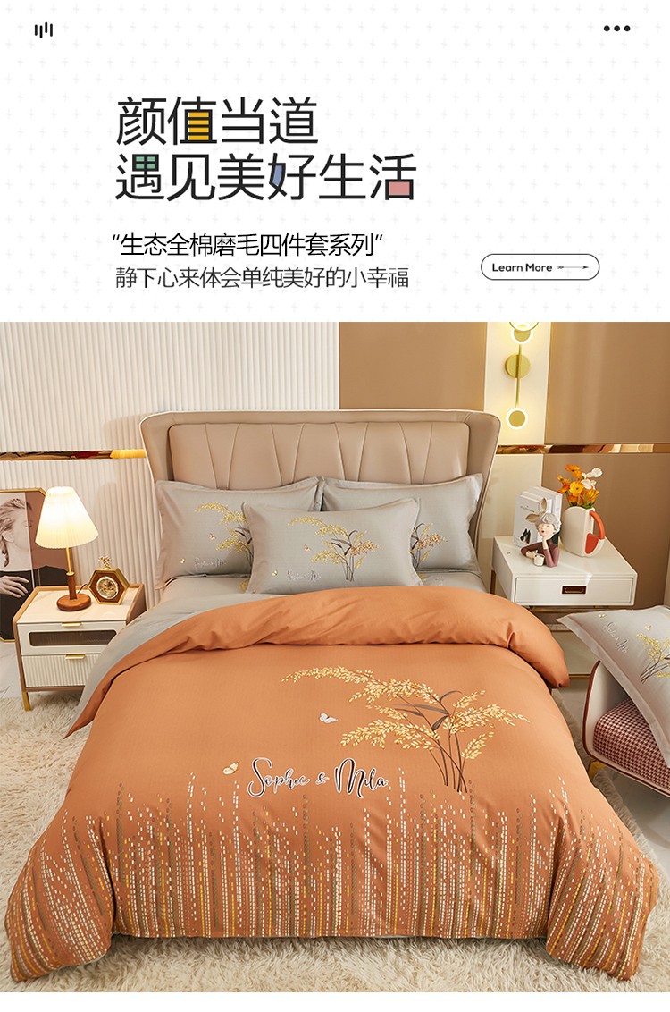 (总)雲归梦 2021新款全棉生态磨毛刺绣四件套,慕思-橙色,慕思-粉紫,慕思-灰,慕思-米黄,慕思-青绿,慕思-天蓝