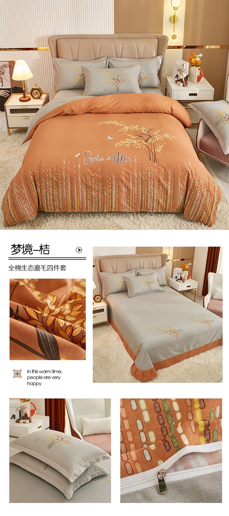 商品名称:雲归梦 2022年新款加厚全棉大版四件套第二批-花卉 梦境-桔