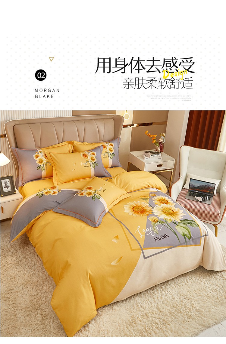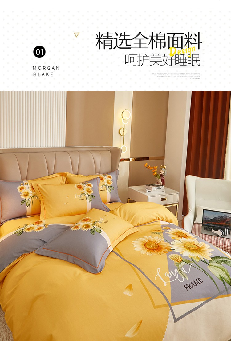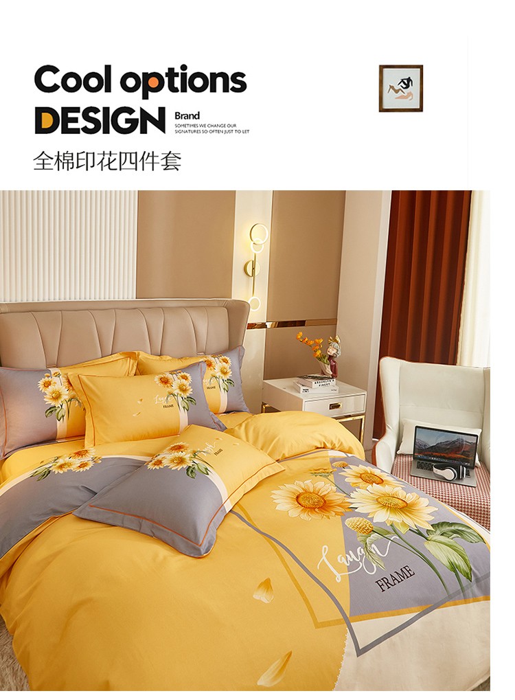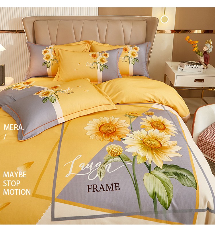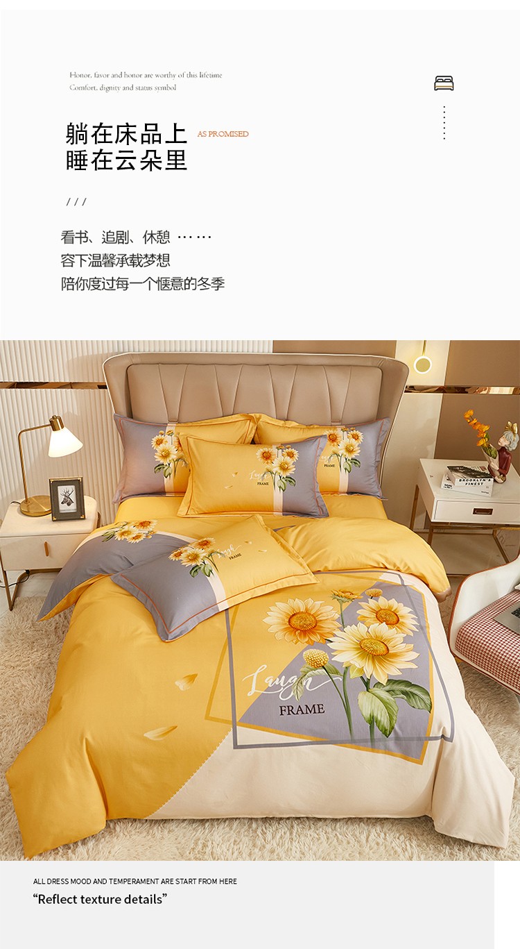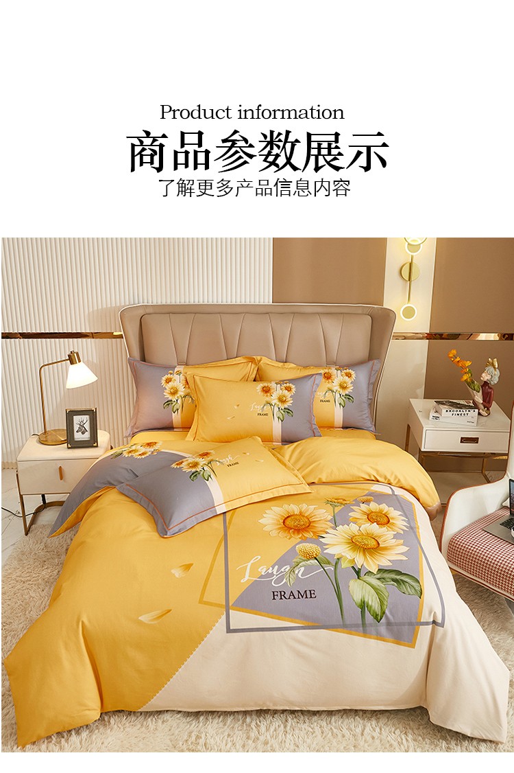 商品名称:雲归梦 2022年新款加厚全棉大版四件套第二批-花卉 夏日晴海-黄