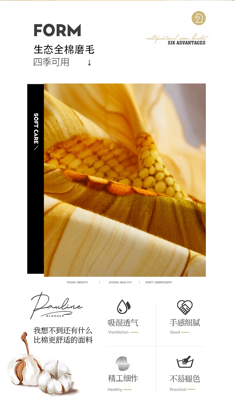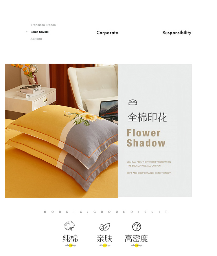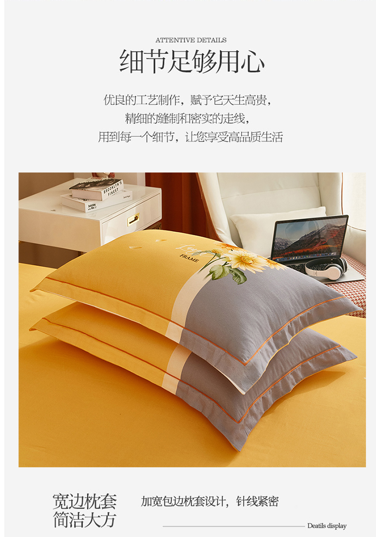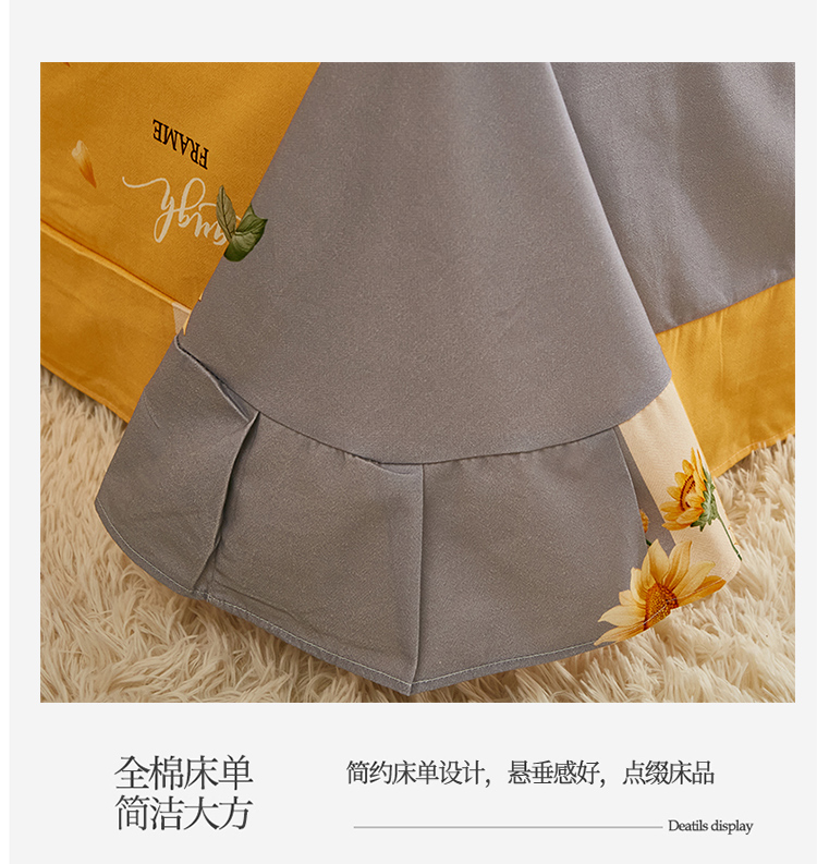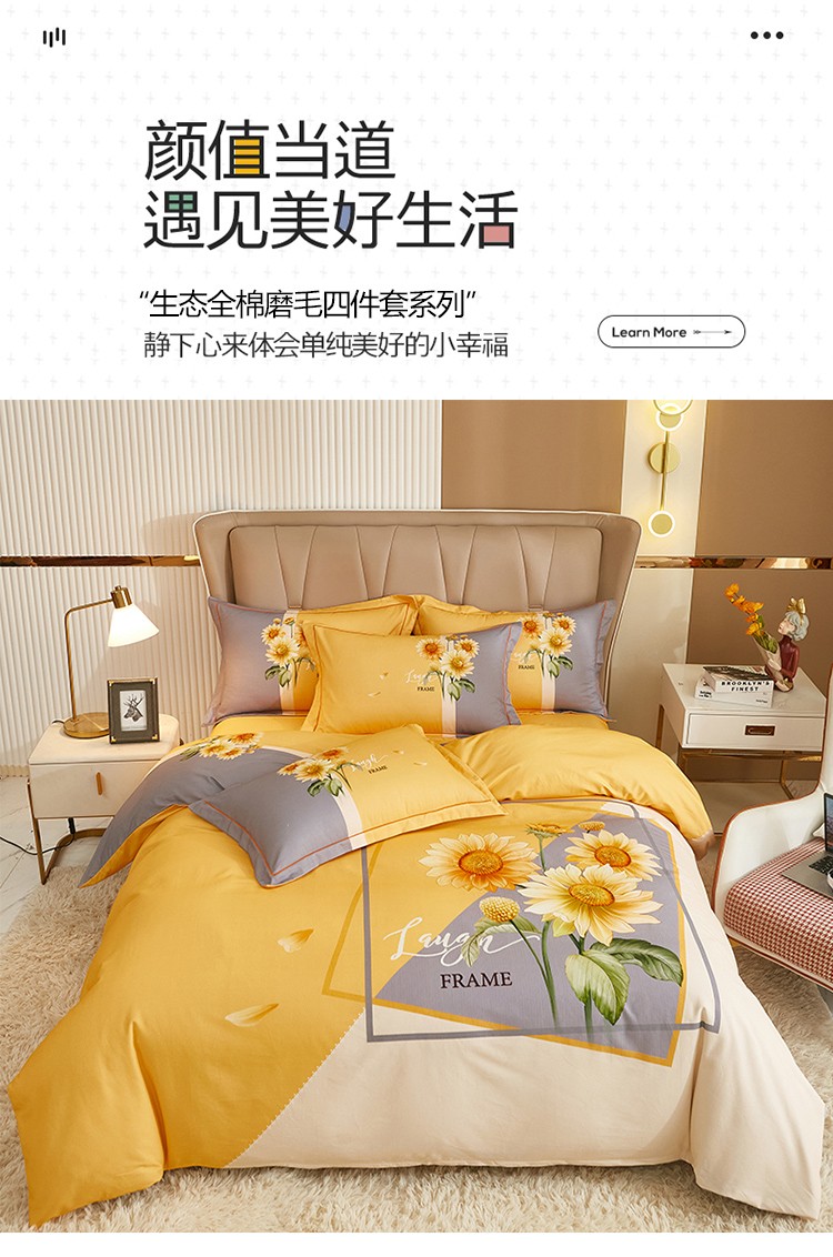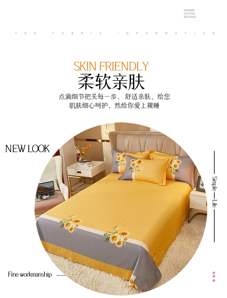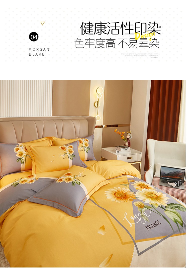 商品名称:雲归梦 2022年新款加厚全棉大版四件套第二批-花卉 夏日晴海-黄
