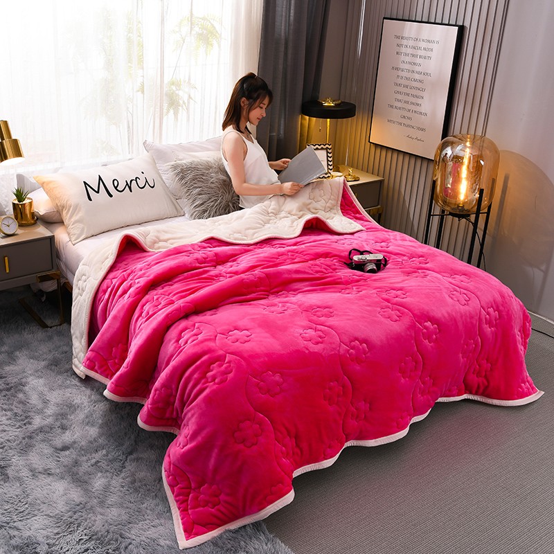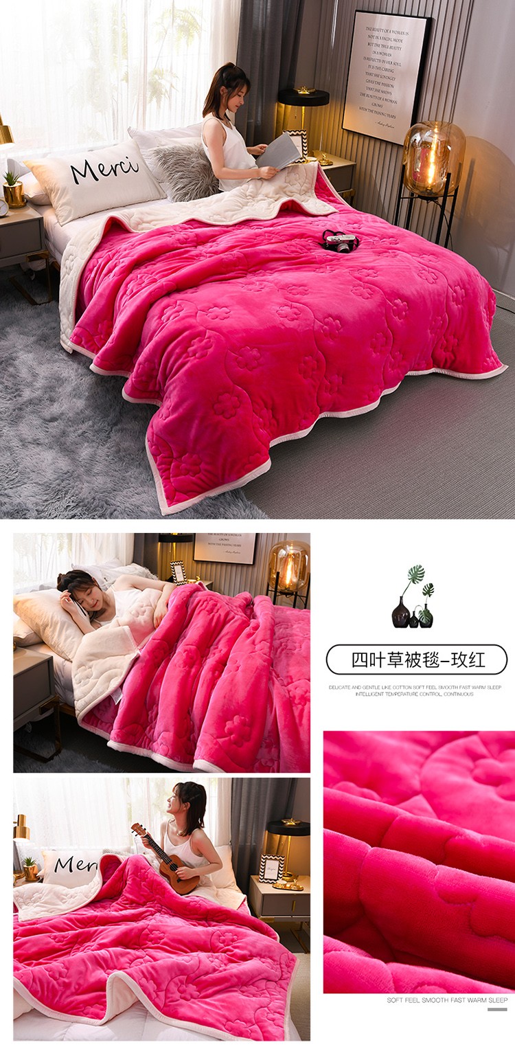 商品名称:小牛席业 2022新款加厚款四叶草被毯系列 四叶草-玫红
