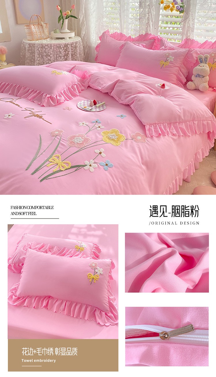 当前位置: 91家纺网 > 商品网购 > 床品套件 > 四件套 > 普通磨毛四件套 > 梦之岛2022新款韩版遇见系列毛巾绣四件套 遇见-胭脂粉