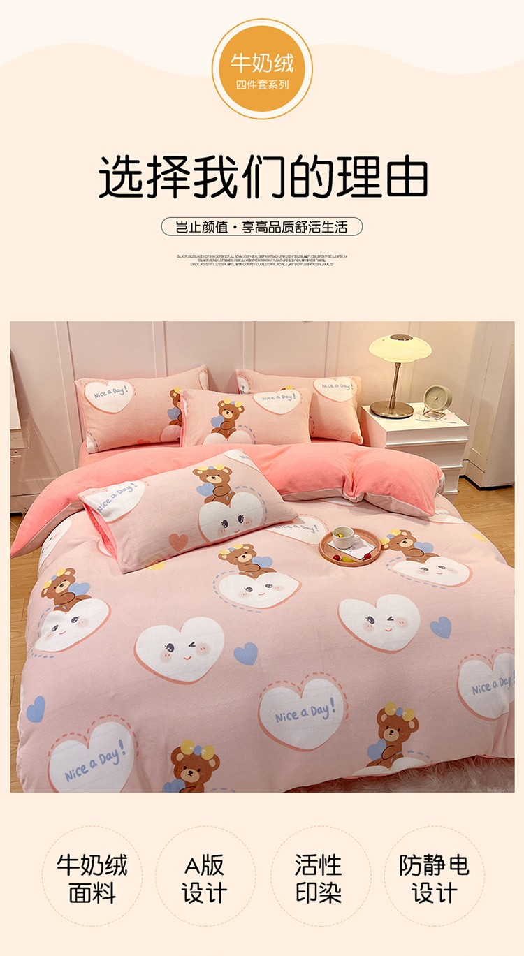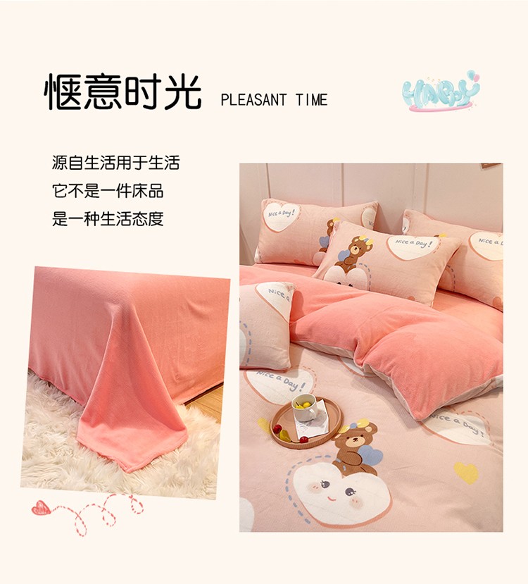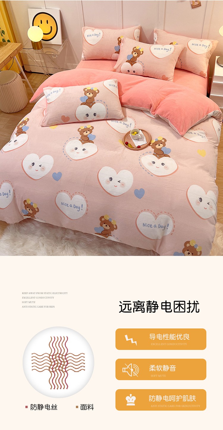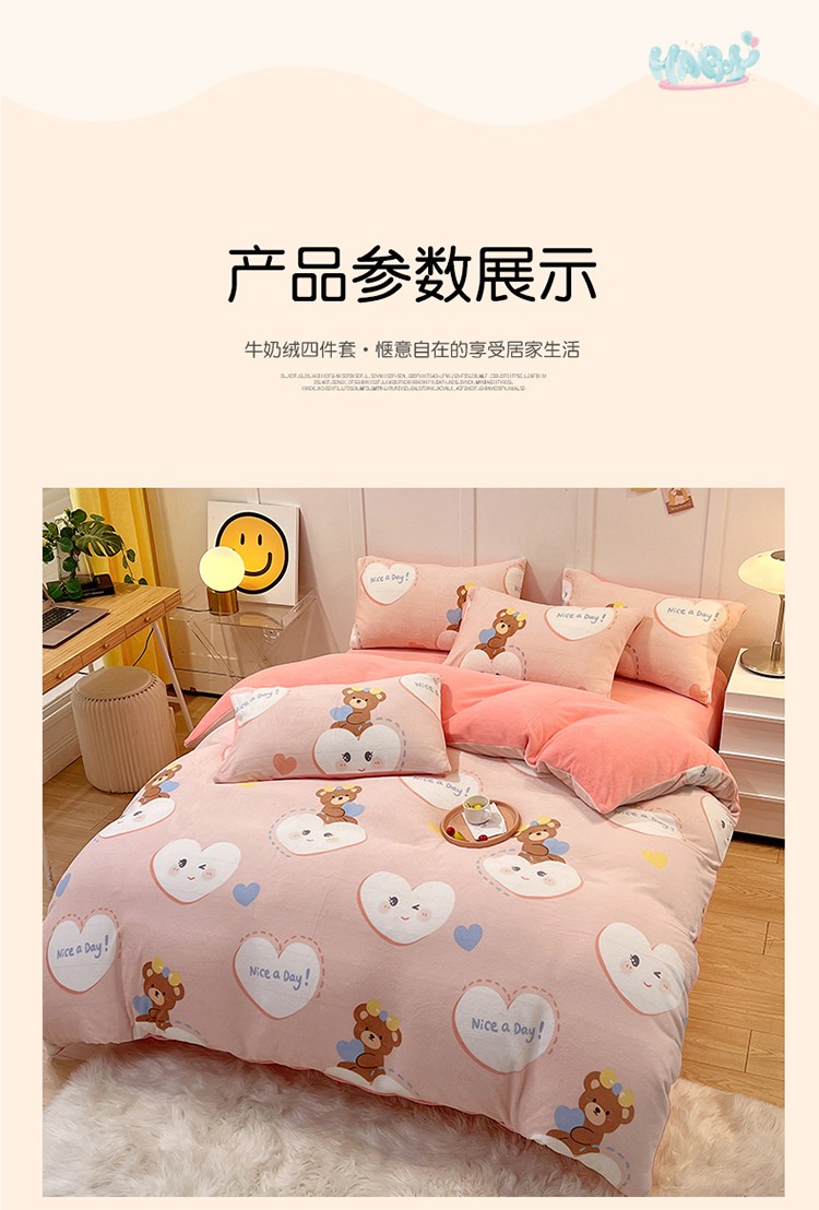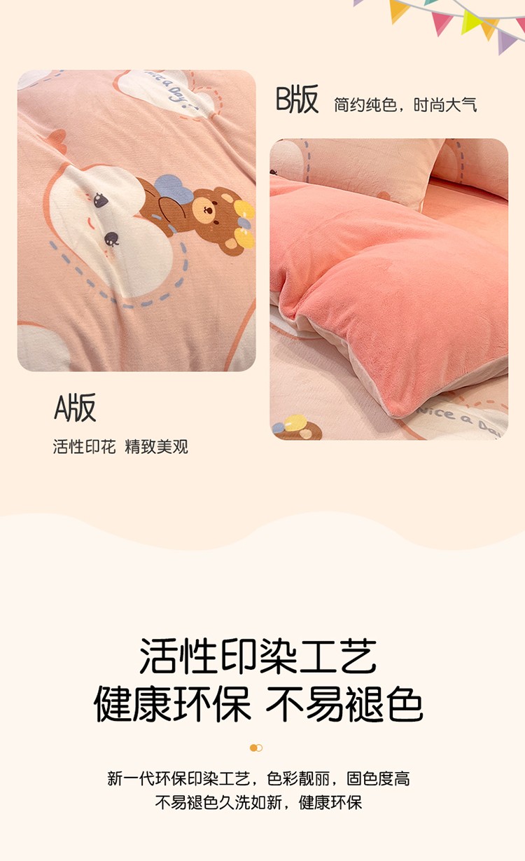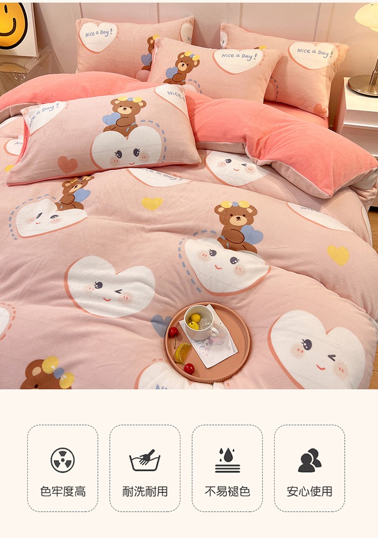 商品名称:孩子王2023冬季加厚牛奶绒水晶绒珊瑚绒印花系列单被套 爱心熊
