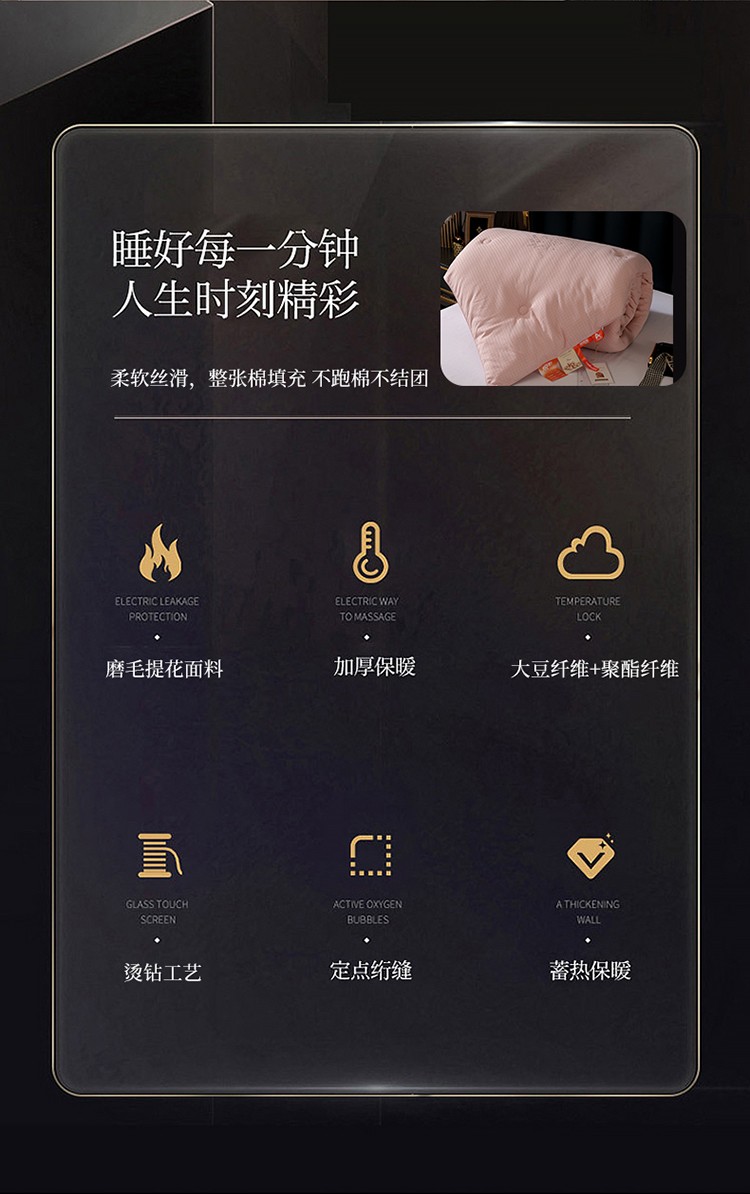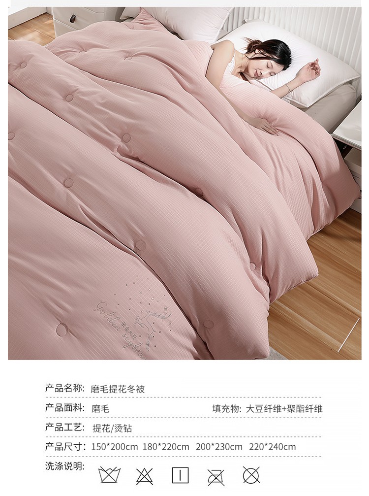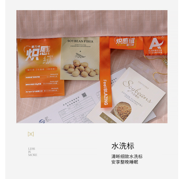 • 填充纤维种类: 大豆蛋白改性聚酯纤维
