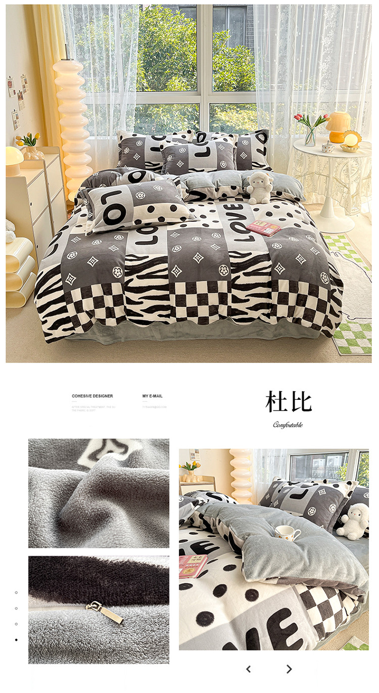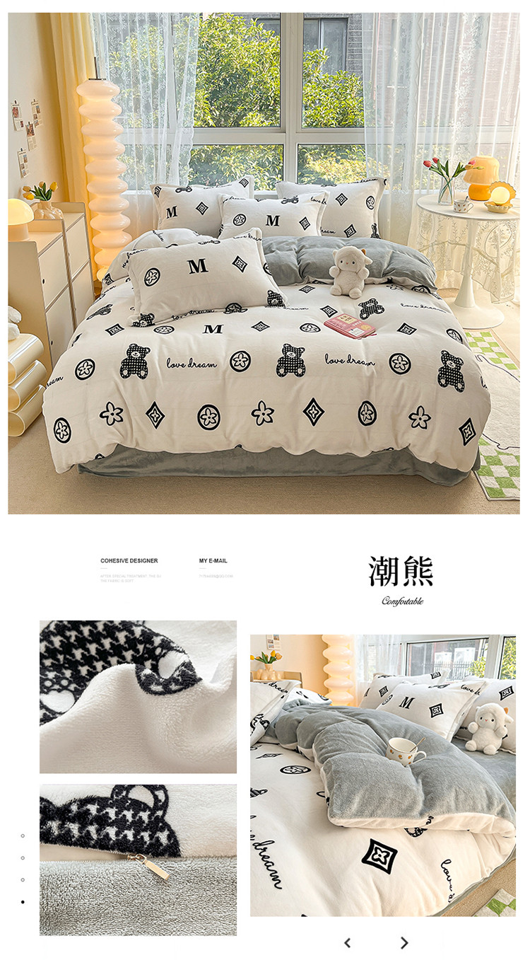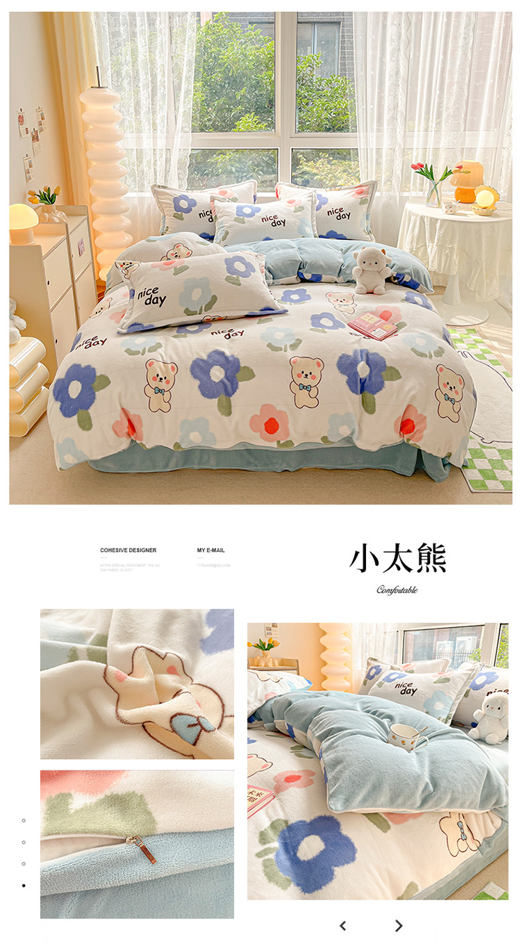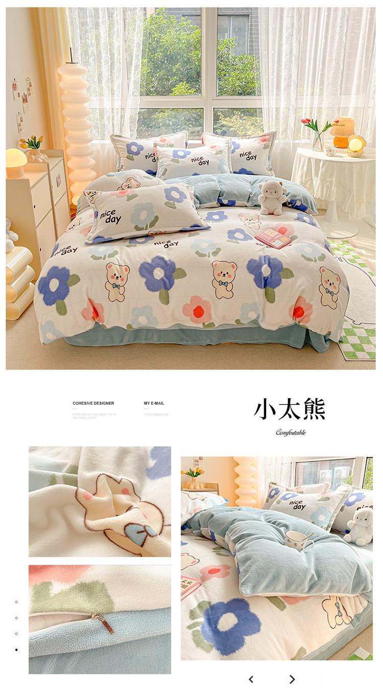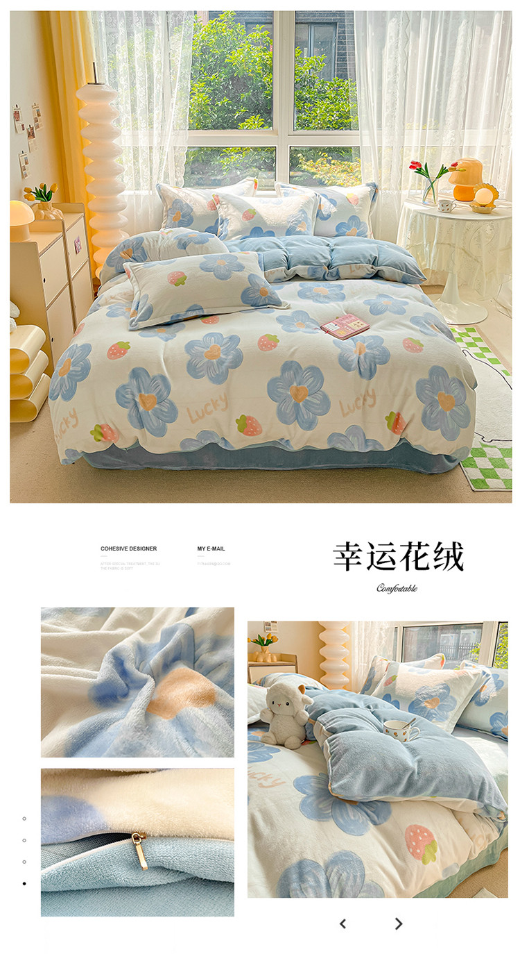 (总)慕尚家纺 2025新款豆豆绒刺绣四件套,大耳狗 白蓝,玫瑰 白粉