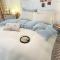米瑞娜2022新款纯色磨毛双拼四件套 奶白淡蓝