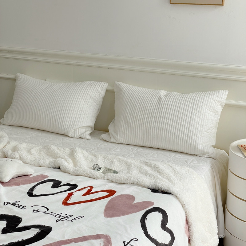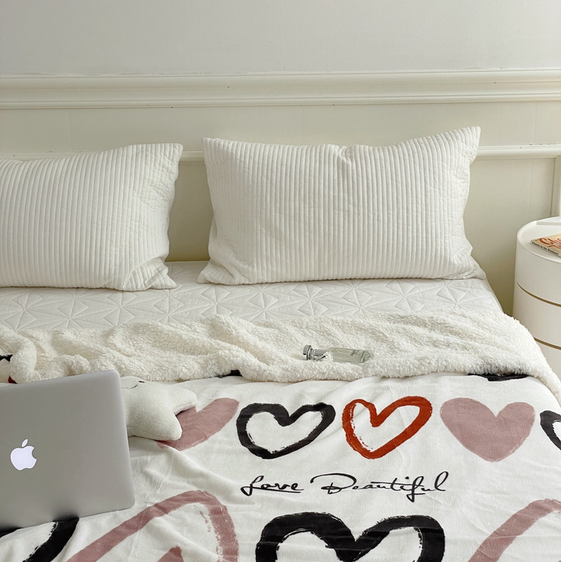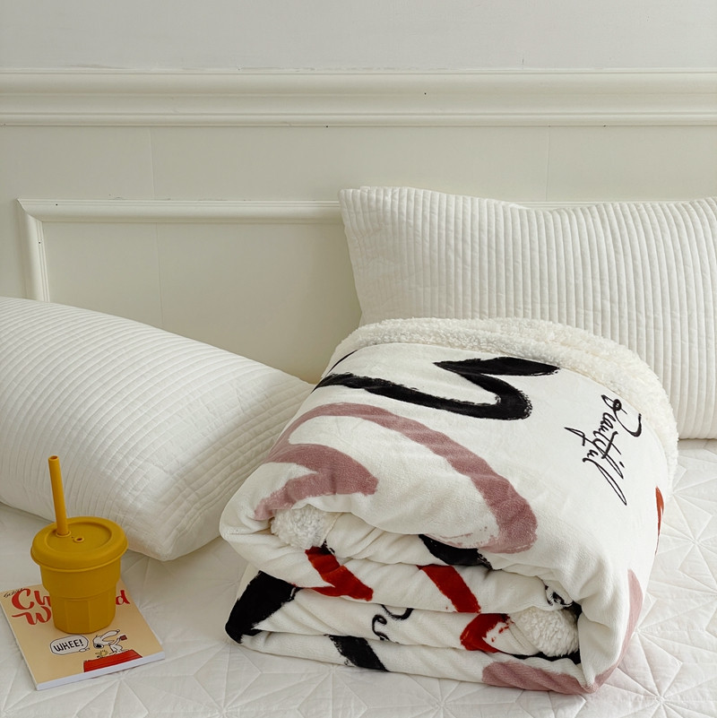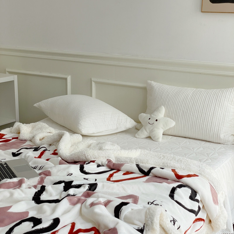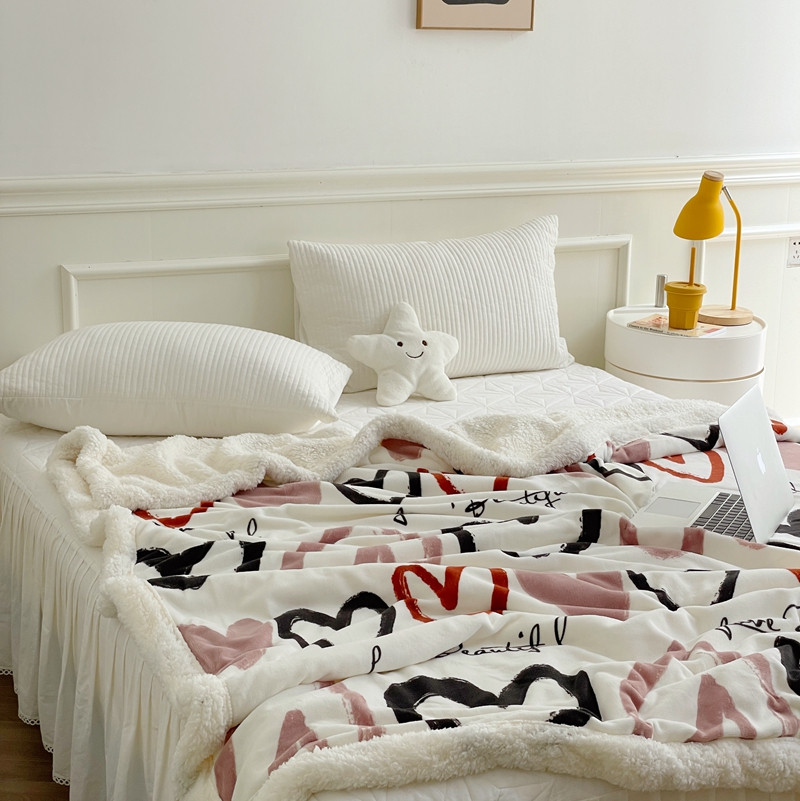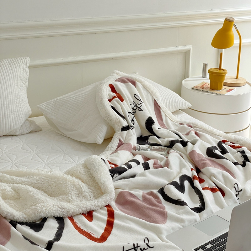 时年 2022新款牛奶绒拼羊羔绒毯 爱心结