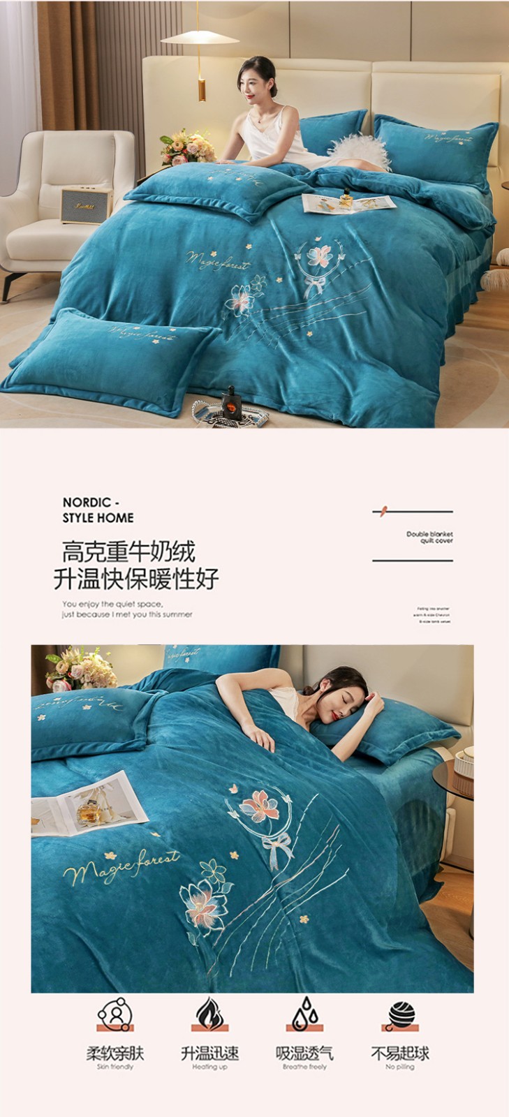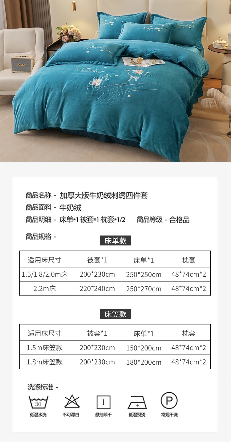 当前位置: 91家纺网 > 商品网购 > 床品套件 > 四件套 > 牛奶绒四件套 > 漫布云2022高克重牛奶绒绣花床裙款四件套法莱金貂婴儿水晶绒