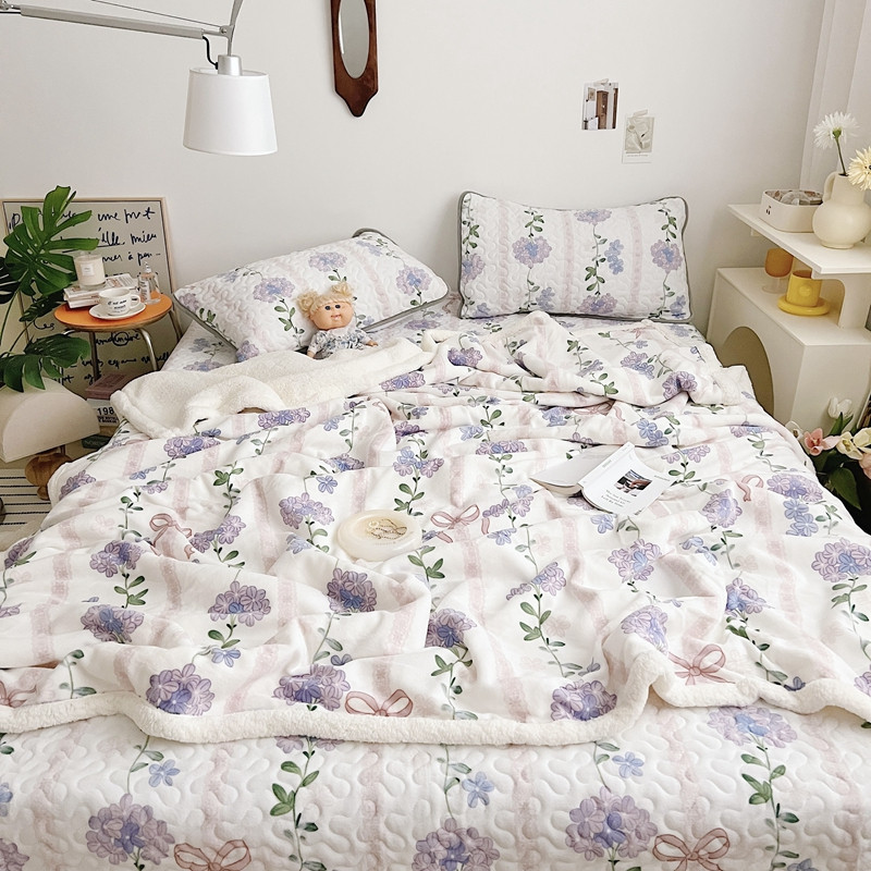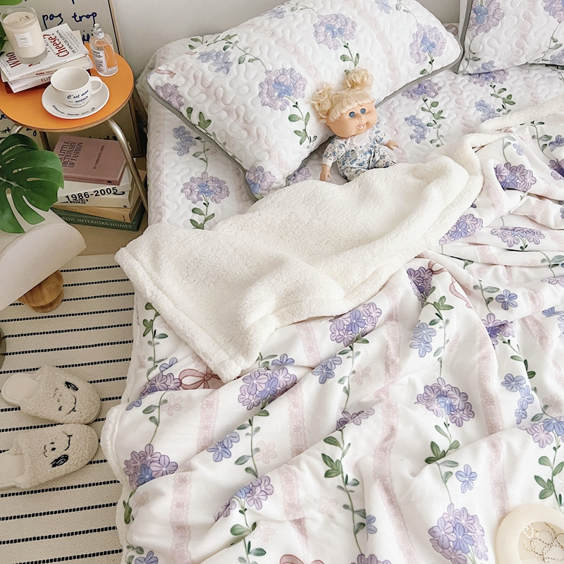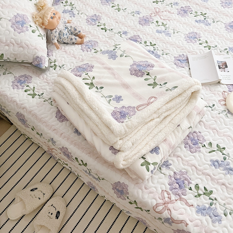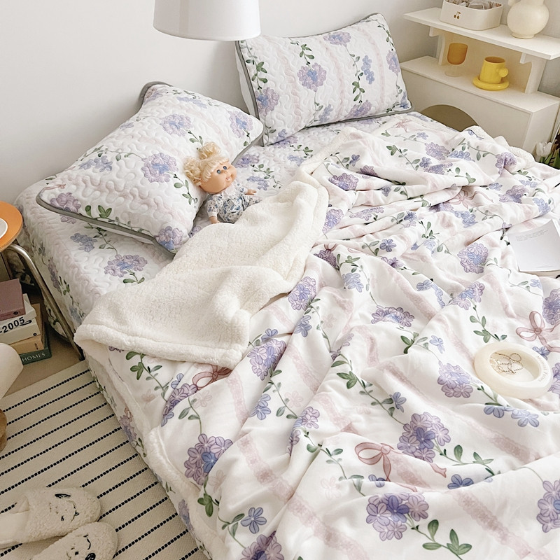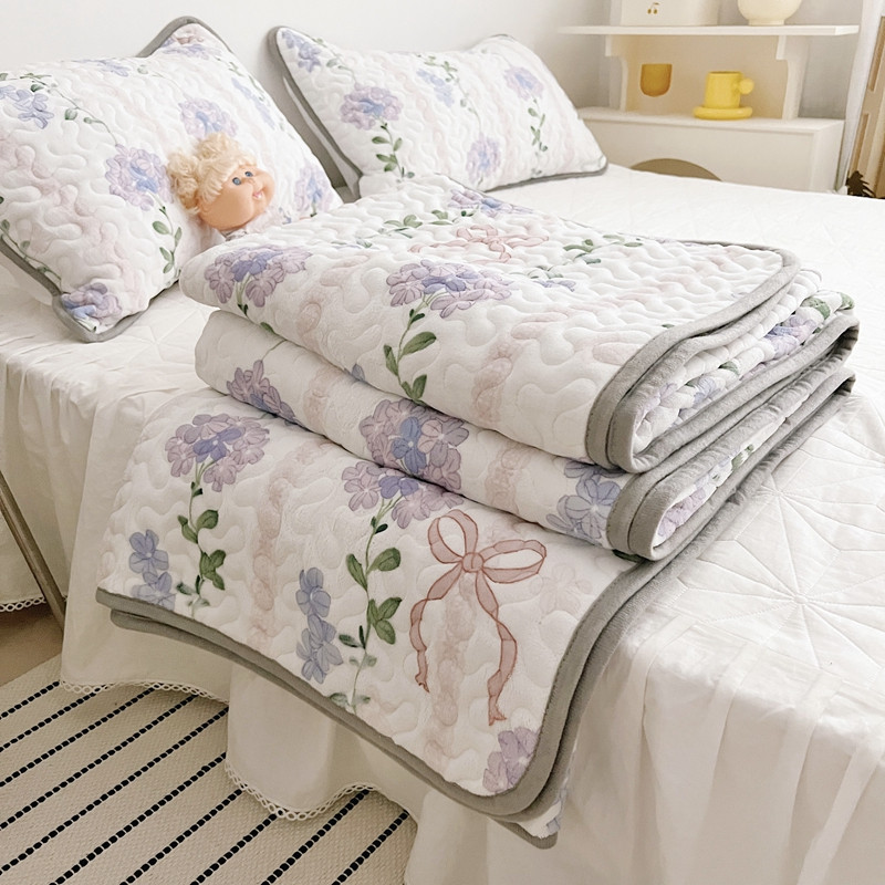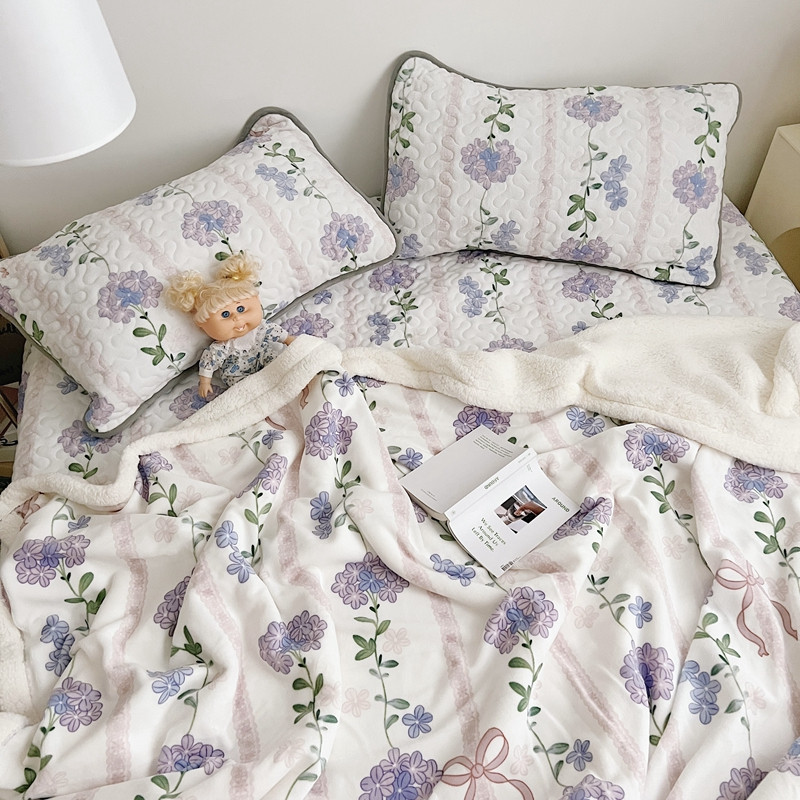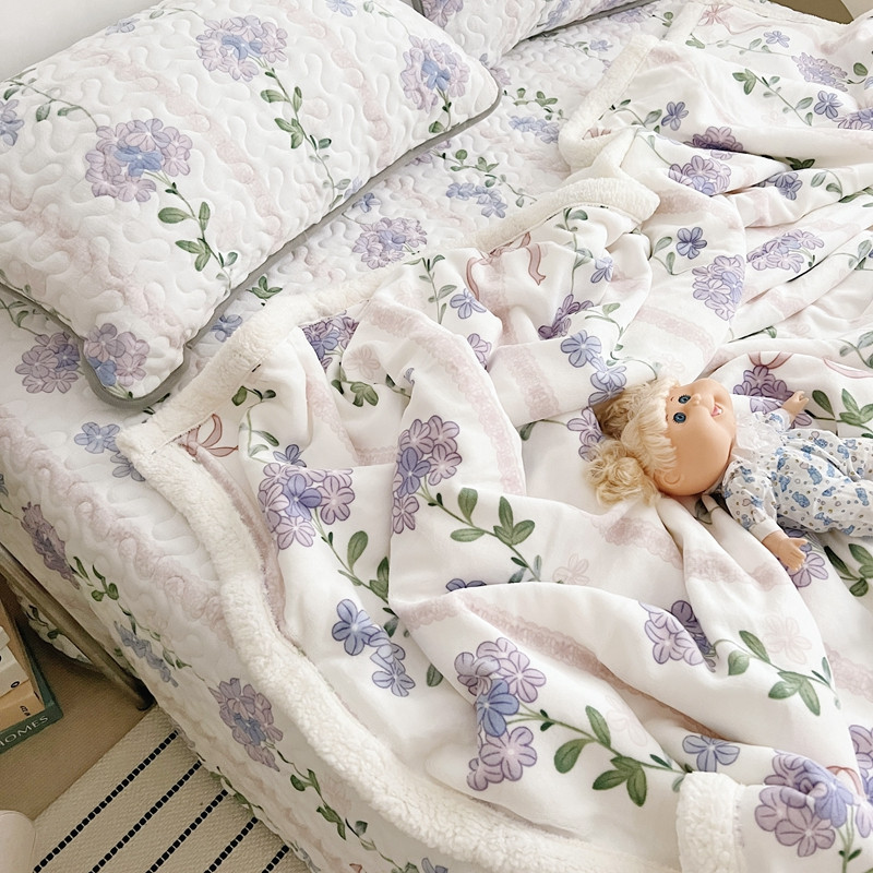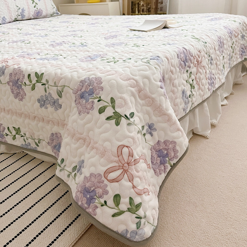 美乐迪 2022新款多功能牛奶绒亲肤棉床盖套件 紫花