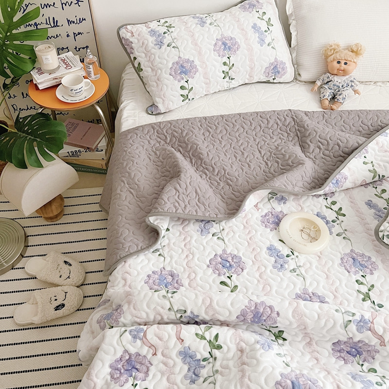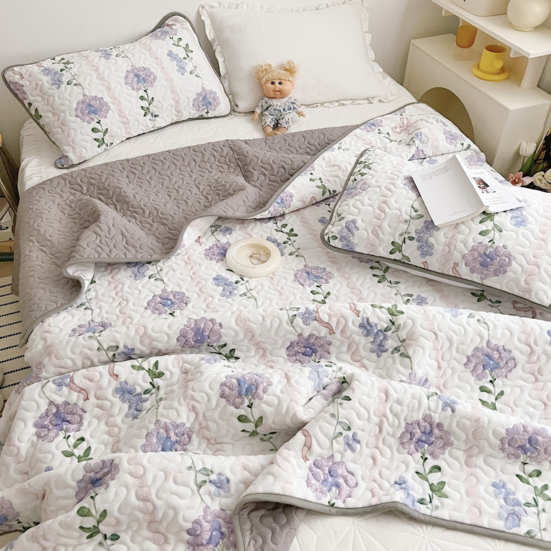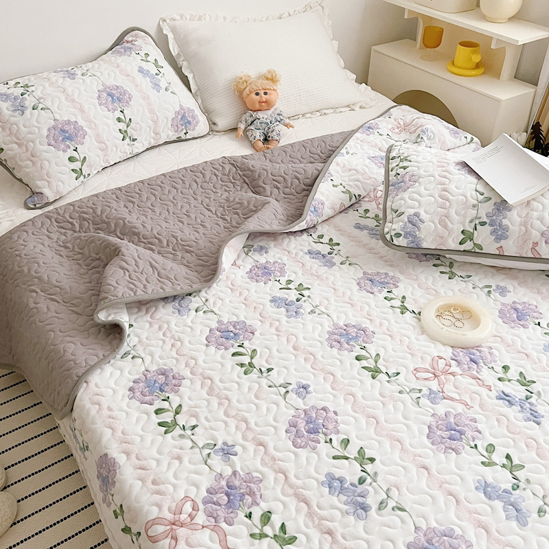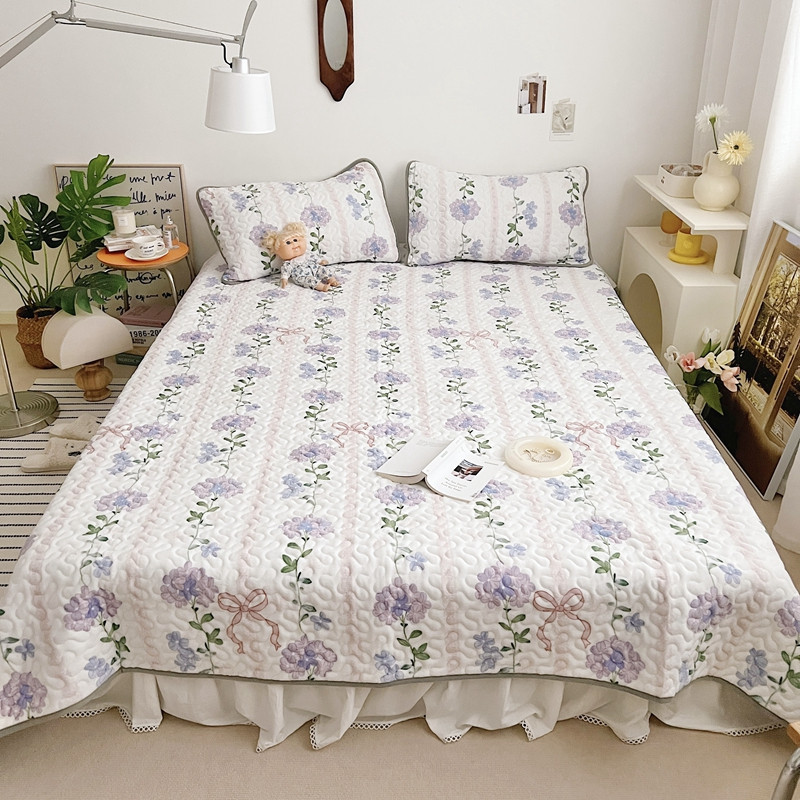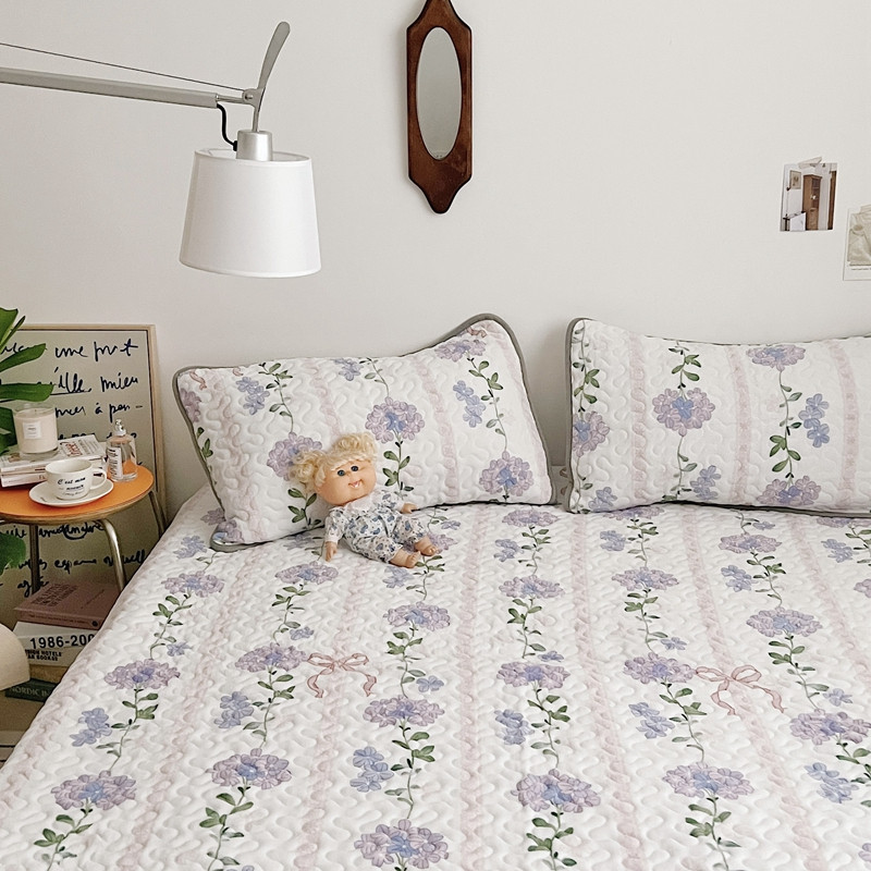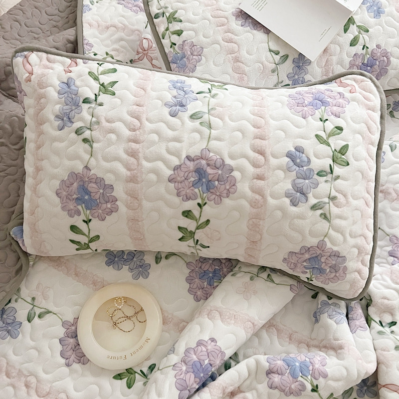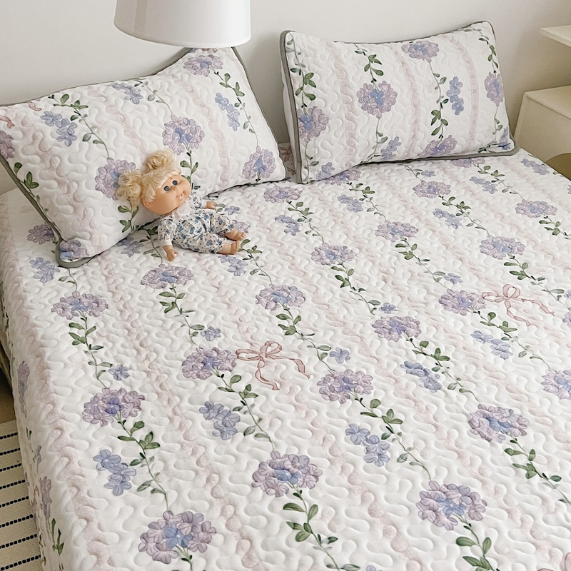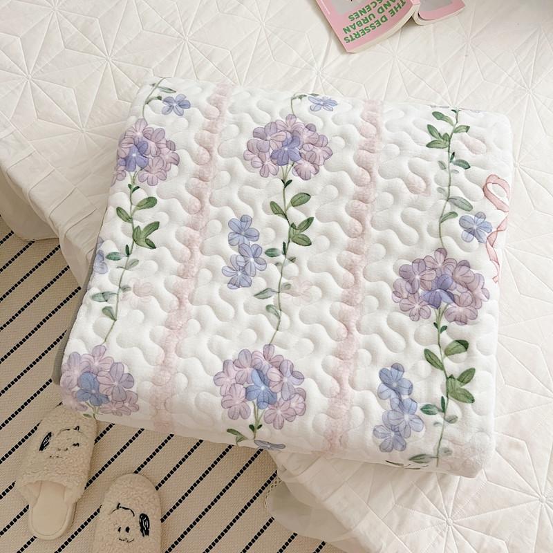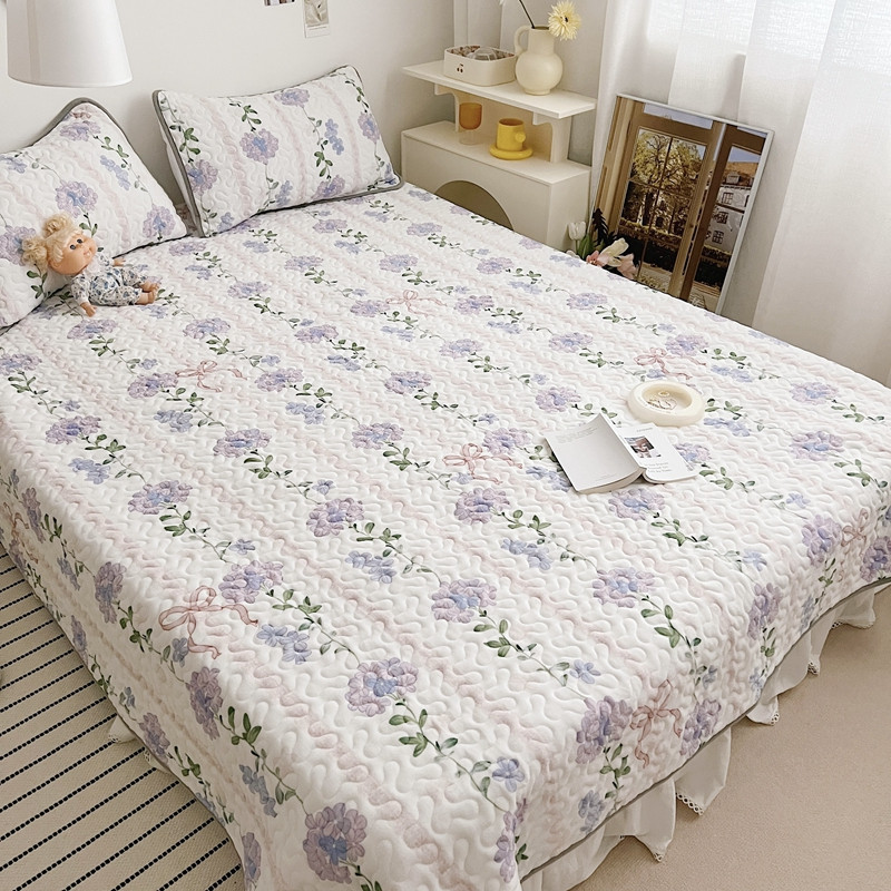 美乐迪 2022新款多功能牛奶绒亲肤棉床盖套件 紫花