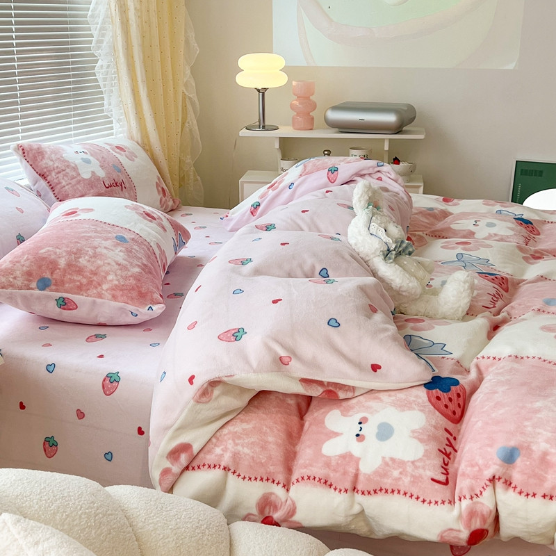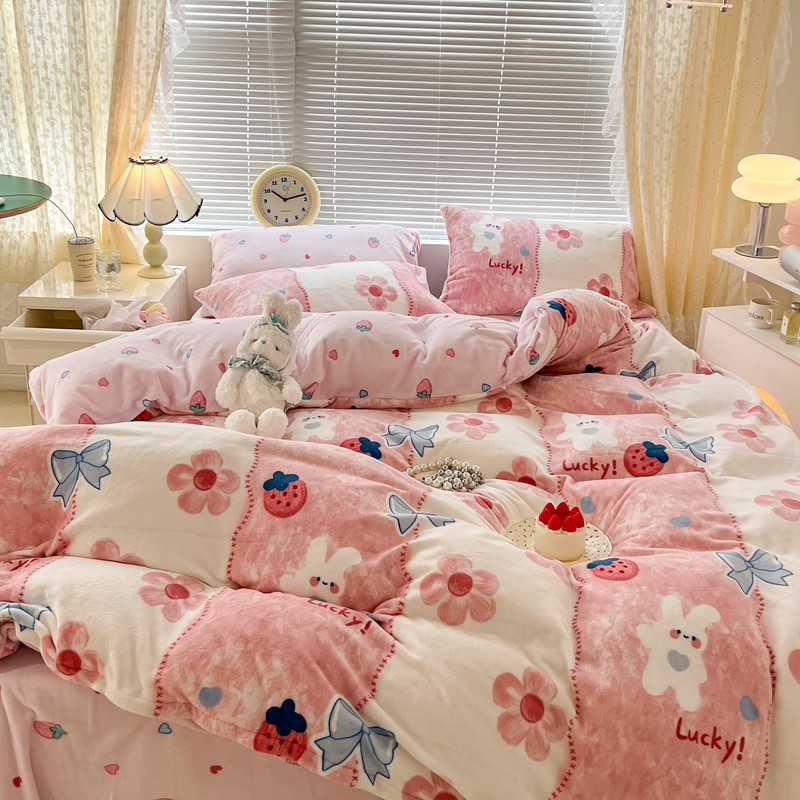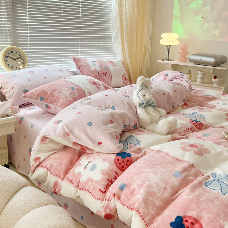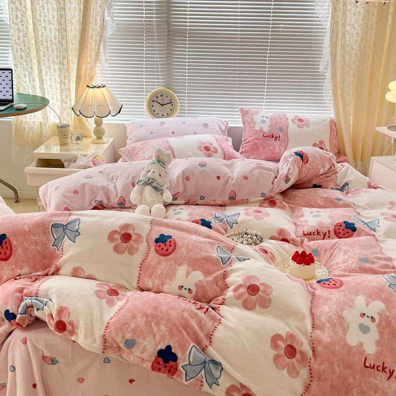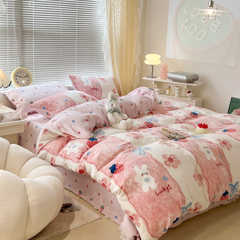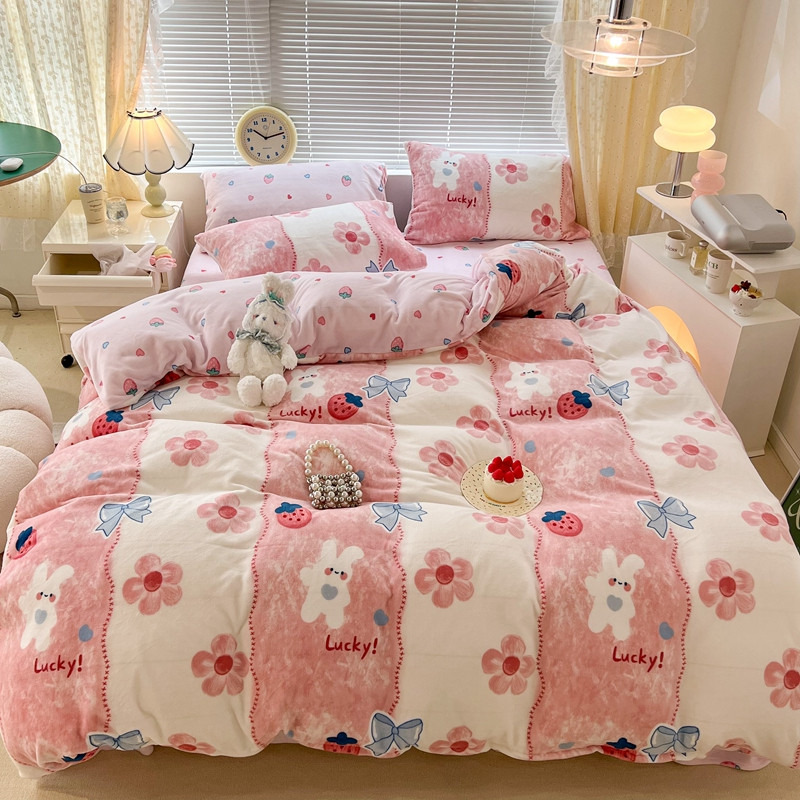 (总)昔可家纺 2024新款印花牛奶绒四件套系列-洛丽塔风,萝莉小兔,小熊烘焙屋,小熊玩偶屋