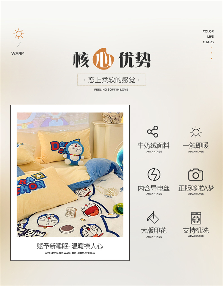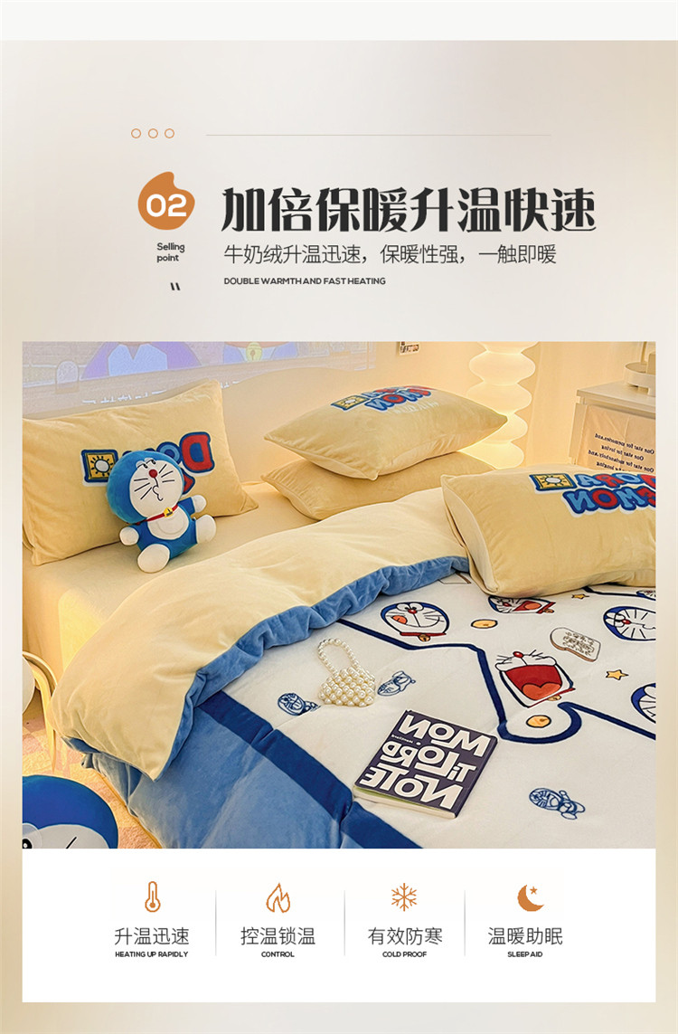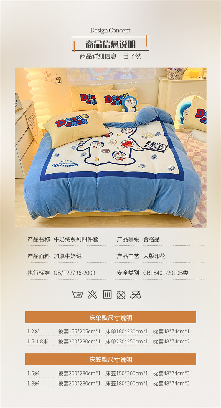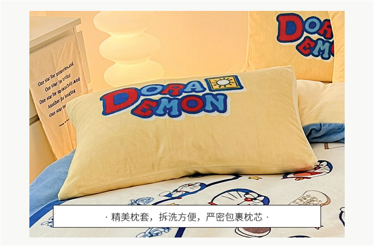 商品名称:正版哆啦A梦叮当猫授权大版数码印花加厚牛奶绒系列四件套 绒大版-叮当乐园