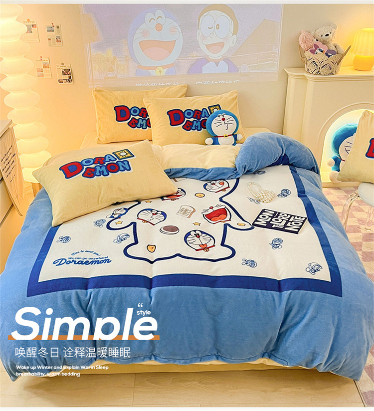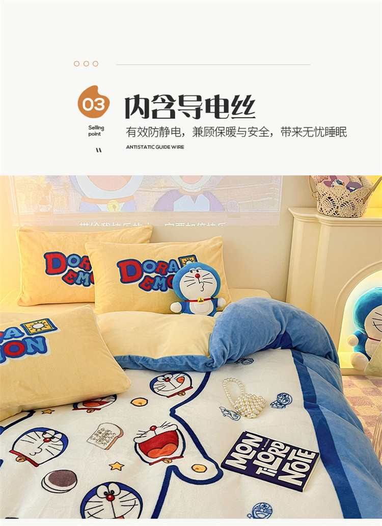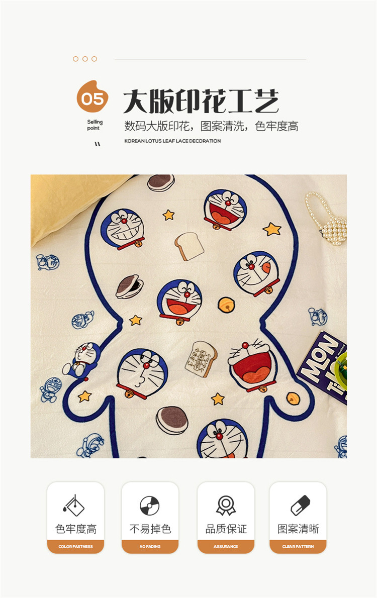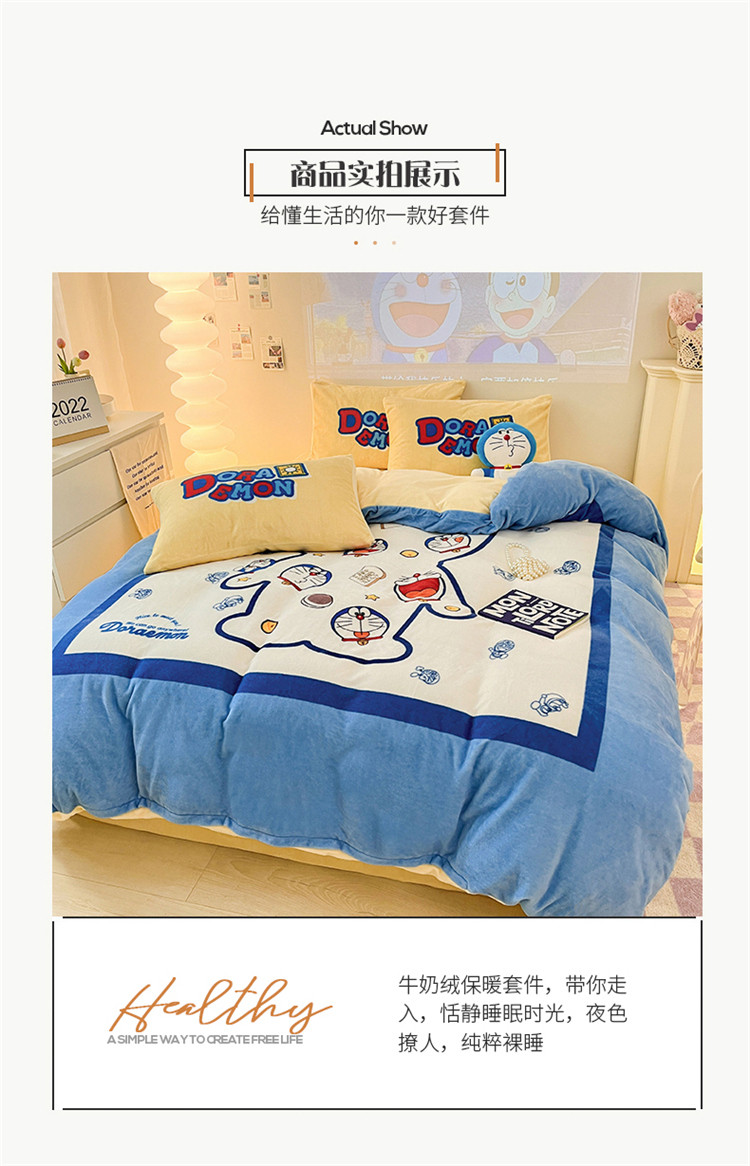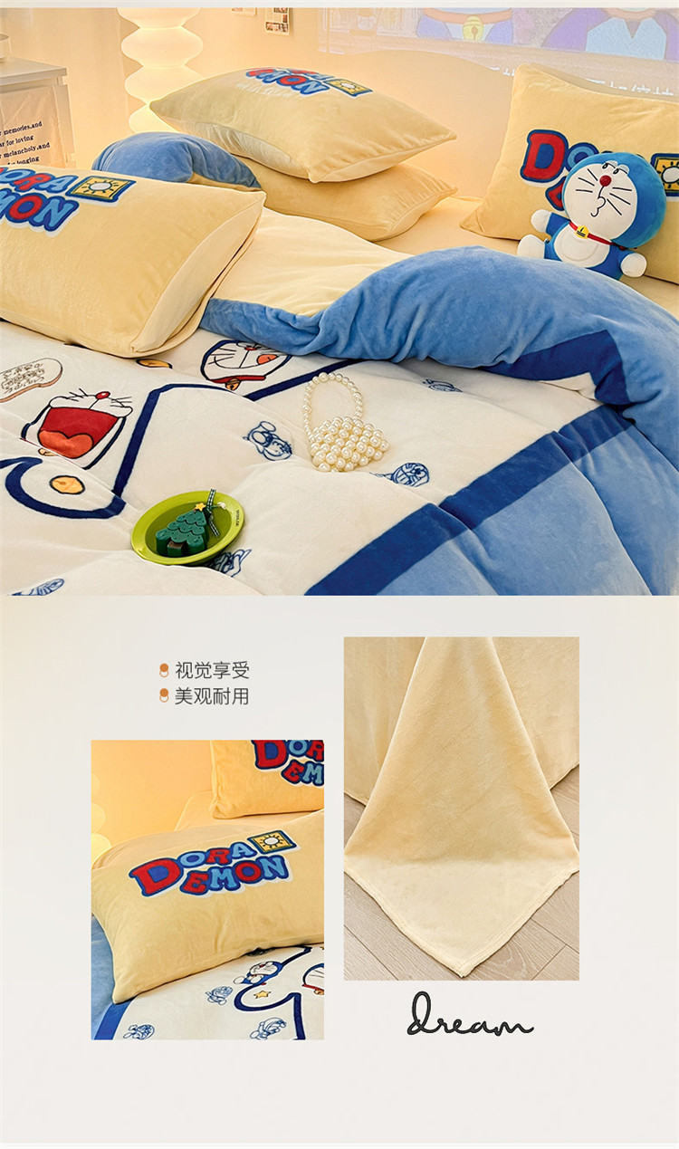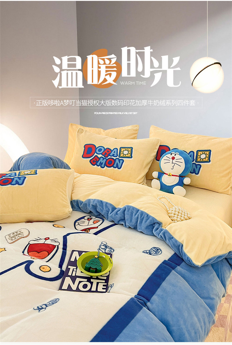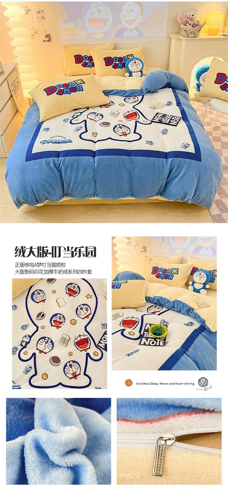 正版哆啦A梦叮当猫授权大版数码印花加厚牛奶绒系列四件套 绒大版-叮当乐园
