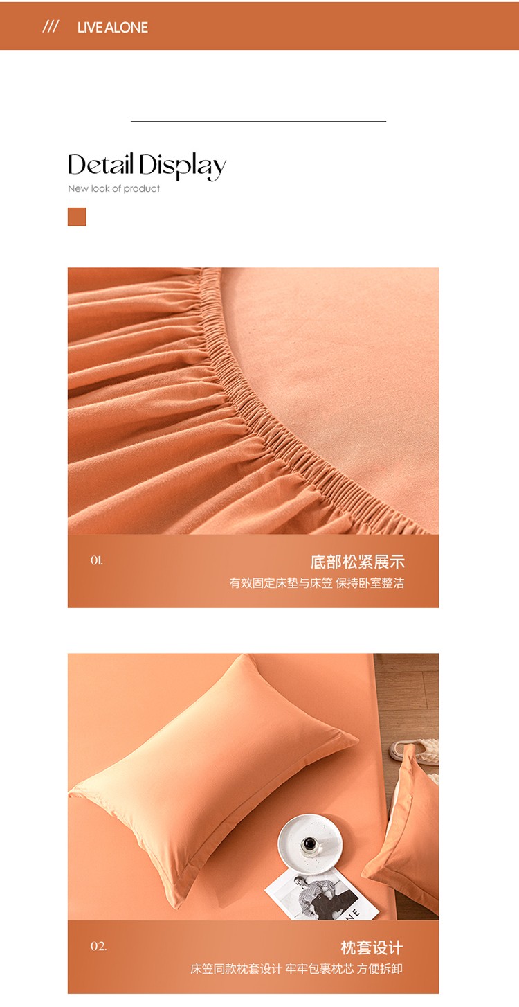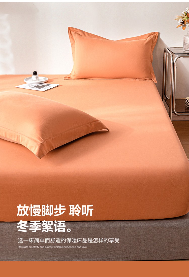 (总)秀色 秋冬60支纯色全棉磨毛床笠三件套纯棉加厚保护罩