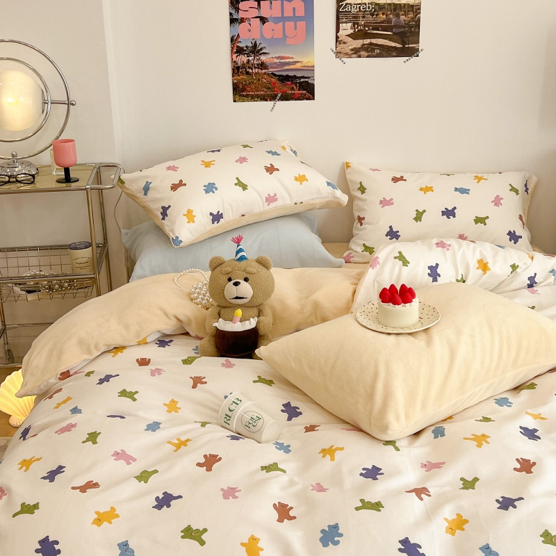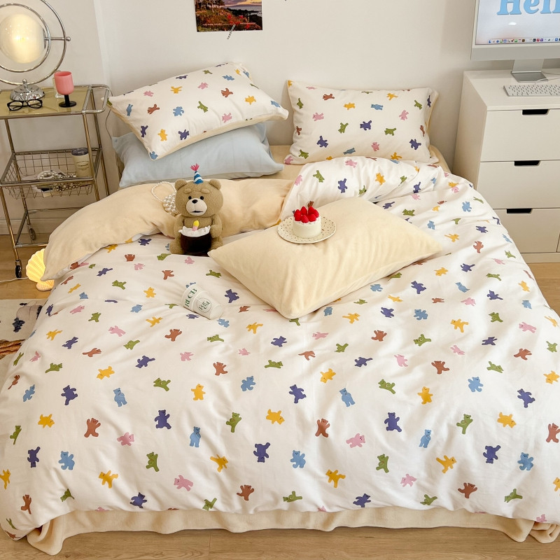 昔可 2022新款梦幻公主风系列棉加绒印花四件套 迷你小小熊