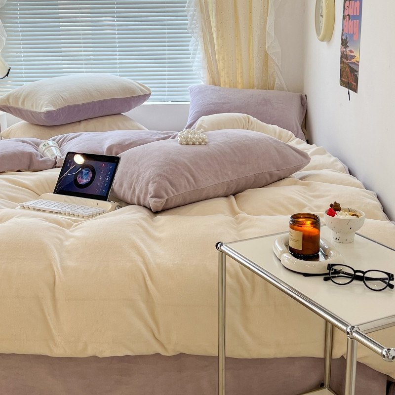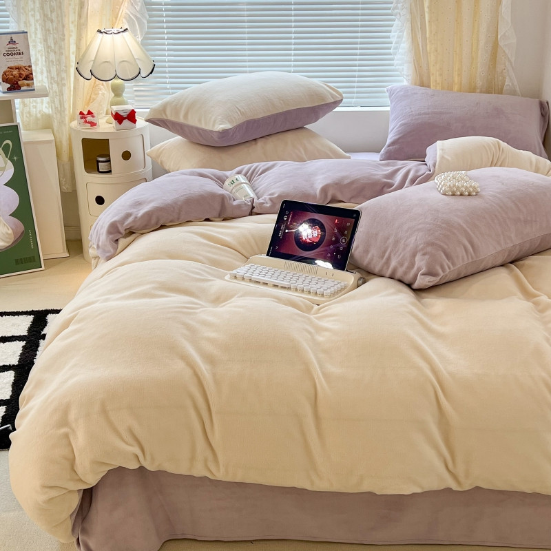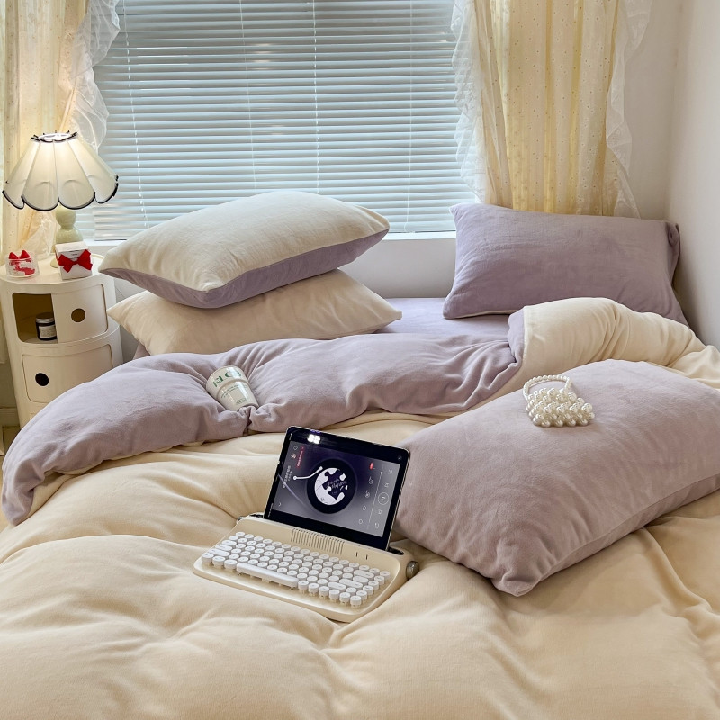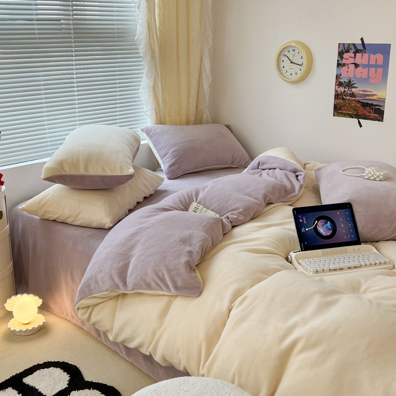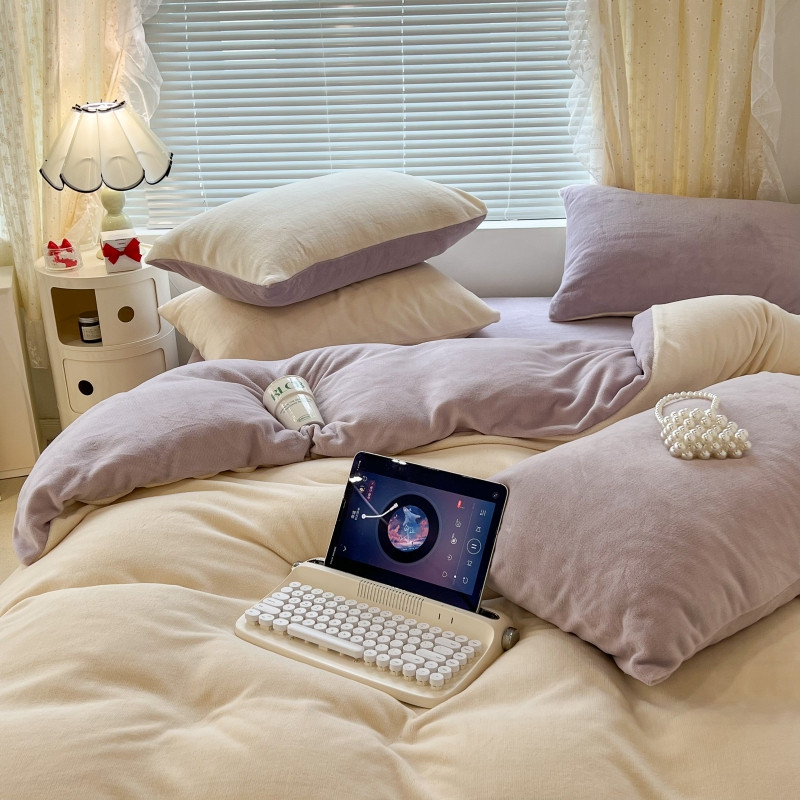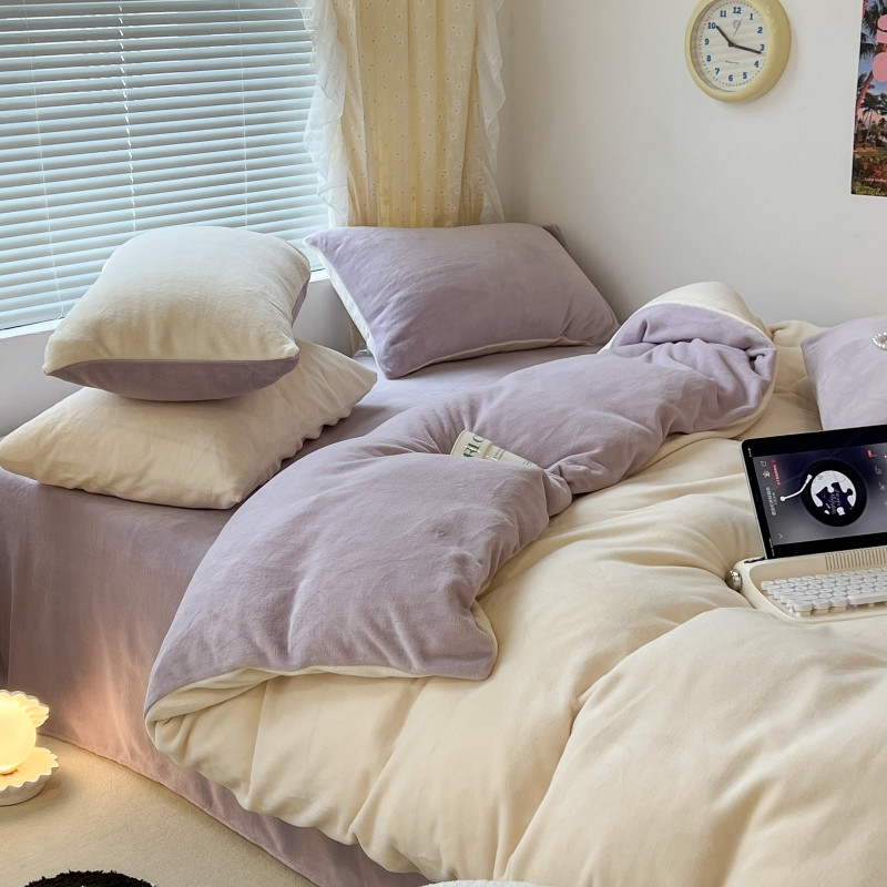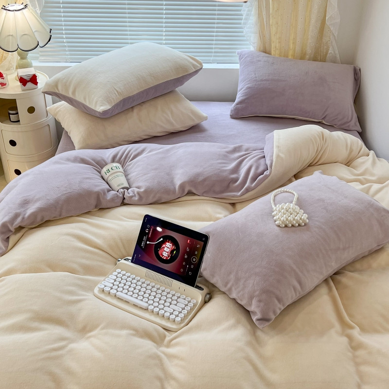 昔可 2022新款奶油双拼系列牛奶绒四件套 奶缇米紫