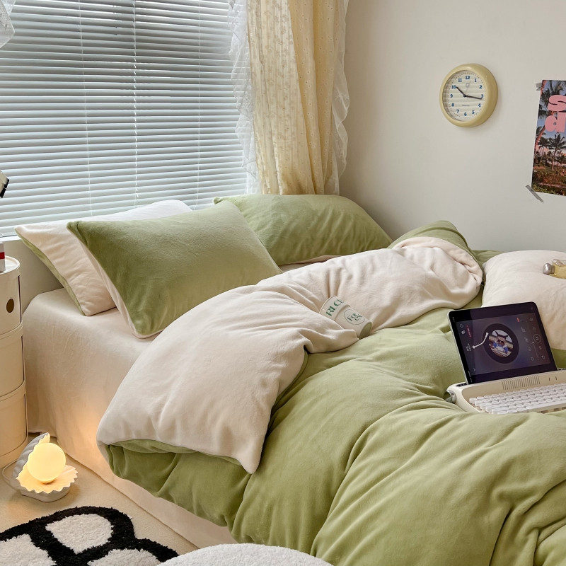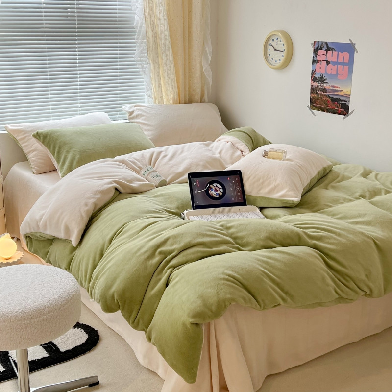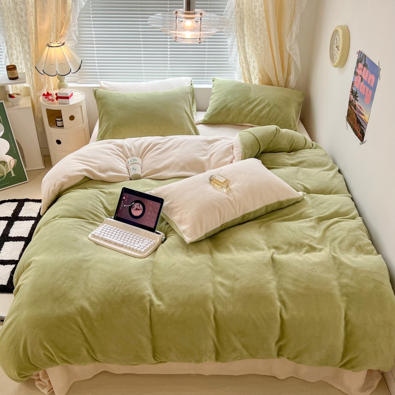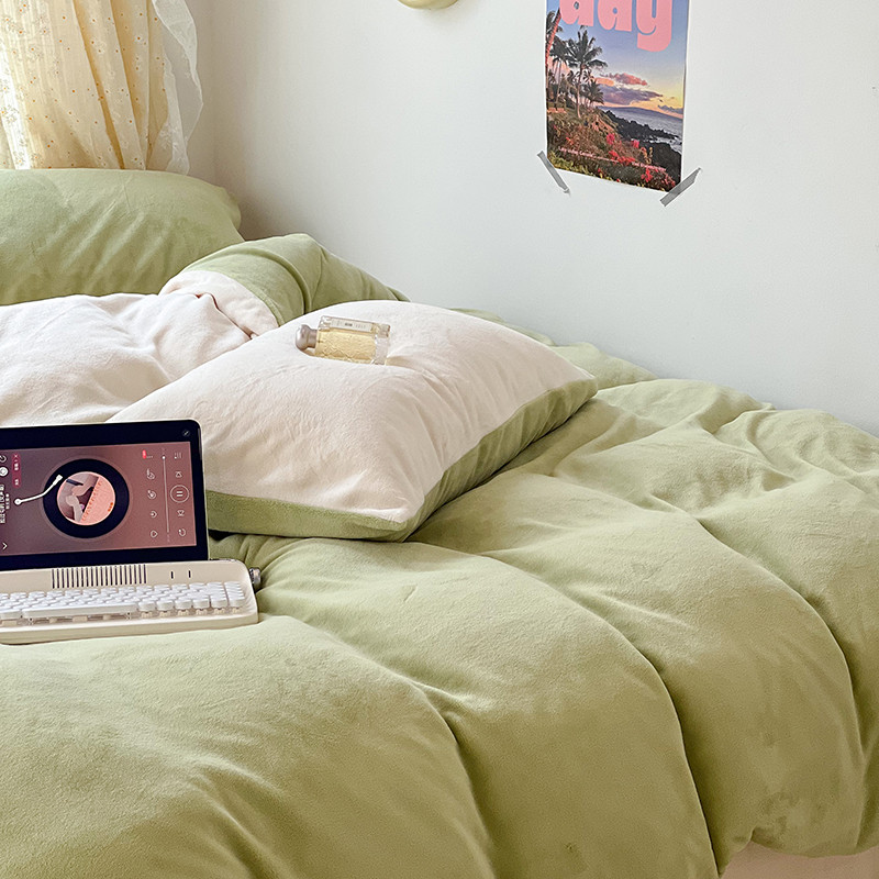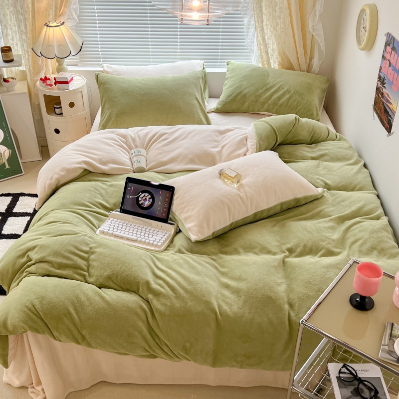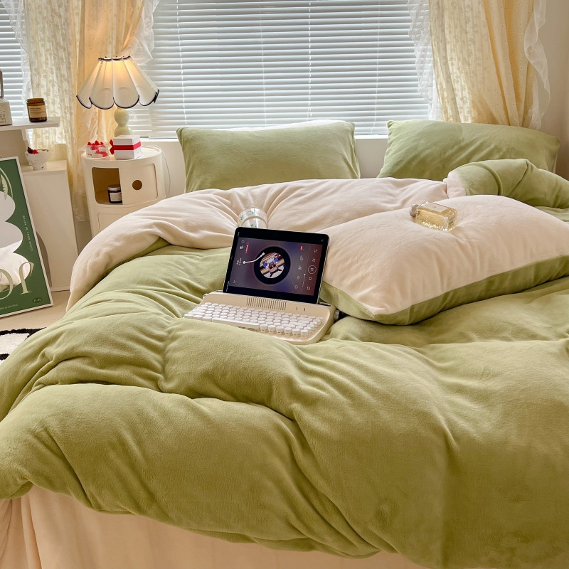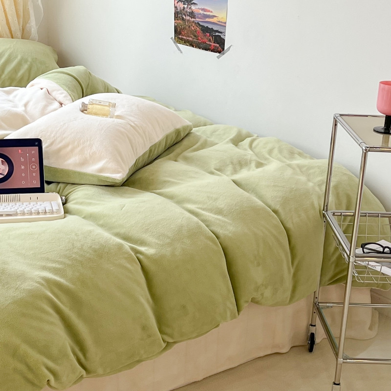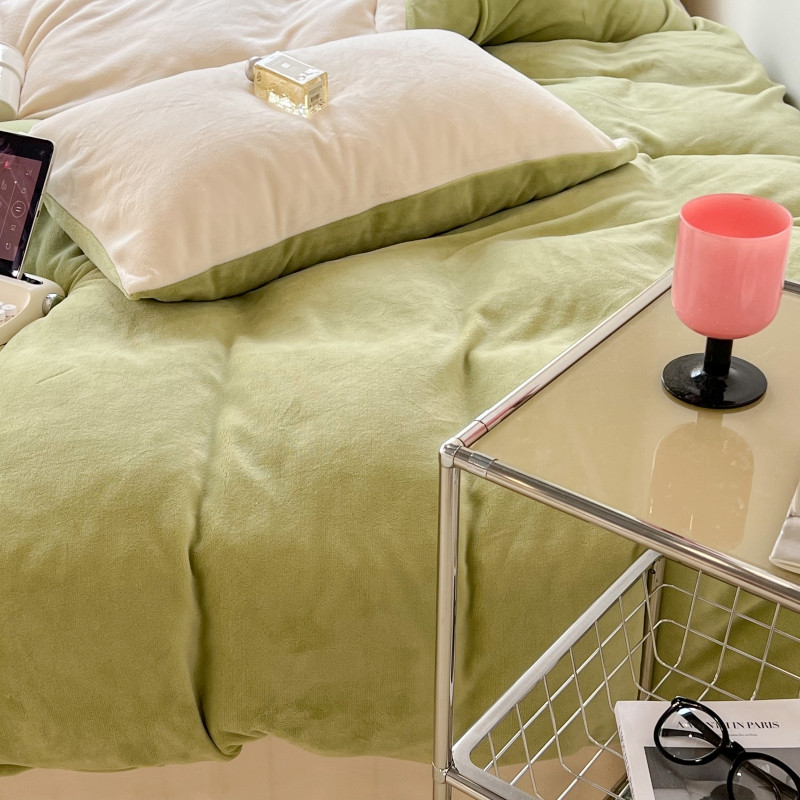 商品名称:昔可 2022新款奶油双拼系列牛奶绒四件套 香柠果绿