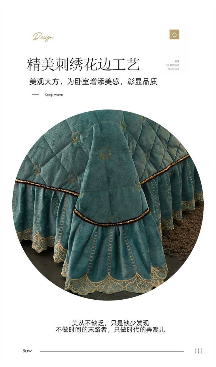 (总)十个点家纺 2025新款千鸟格磨毛绗缝夹棉纯色花边床裙三件套,经典白色,经典兰色,经典浅灰,经典浅驼,经典深灰,经典玉粉