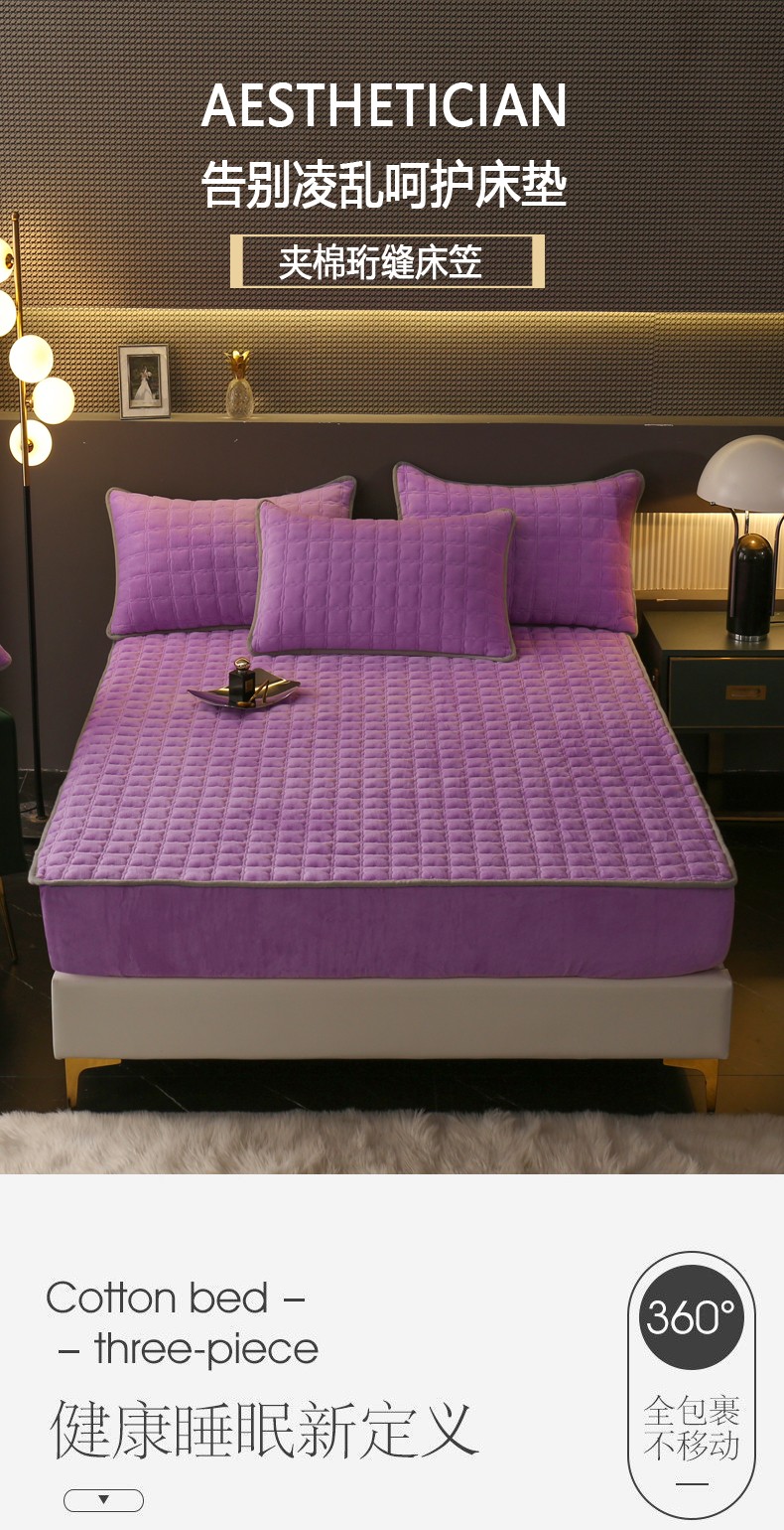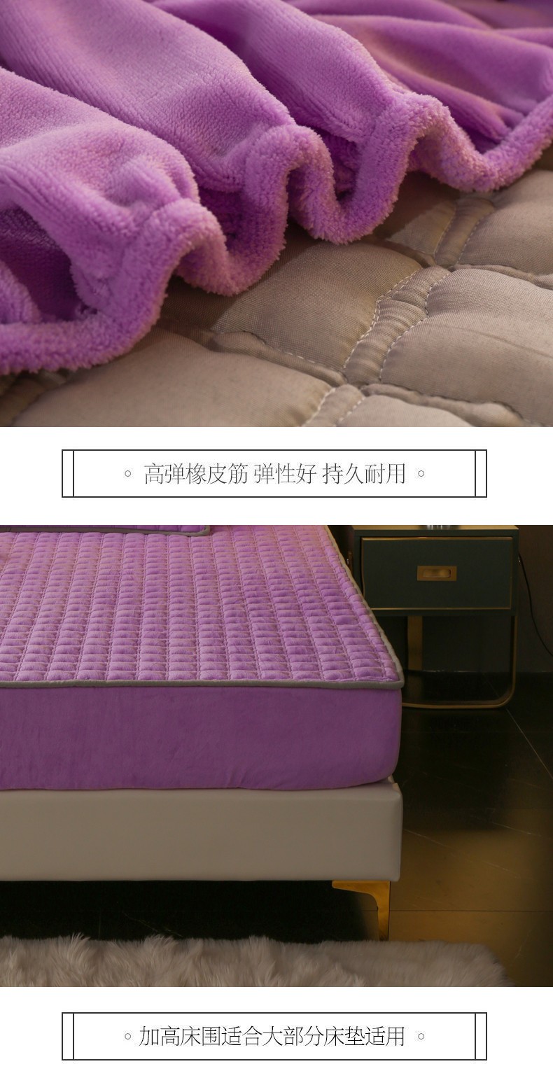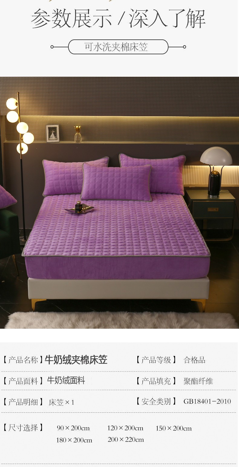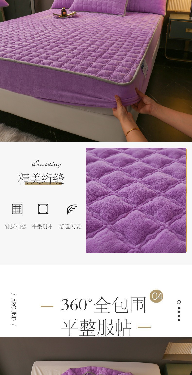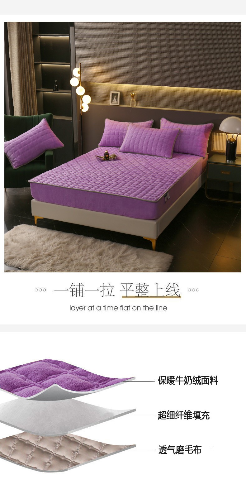 商品名称:2025啊雅家居新款单品牛奶绒夹棉床笠 紫色