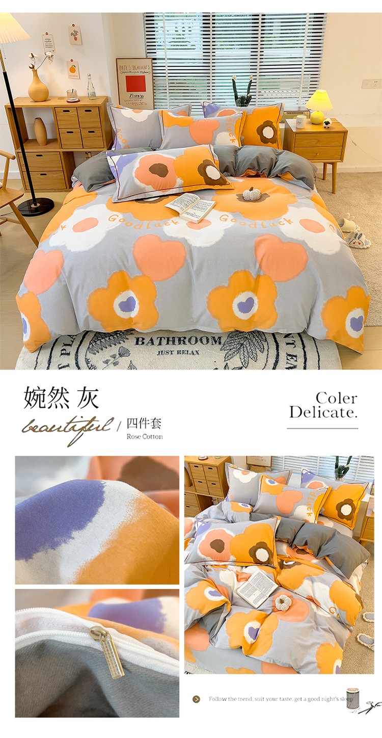 商品名称:芃成 2022新款全棉磨毛四件套 婉然 灰