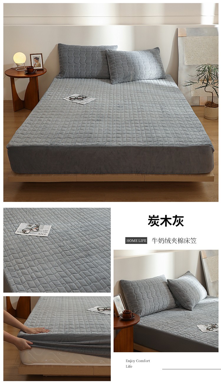 (总)小米笠 2021新款牛奶绒夹棉床笠,宝石蓝,酱紫,藕玉,清新绿,深豆沙,炭木灰