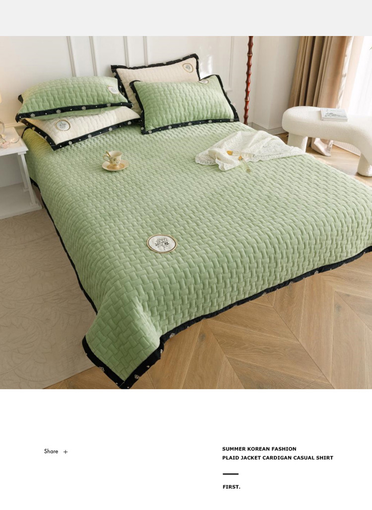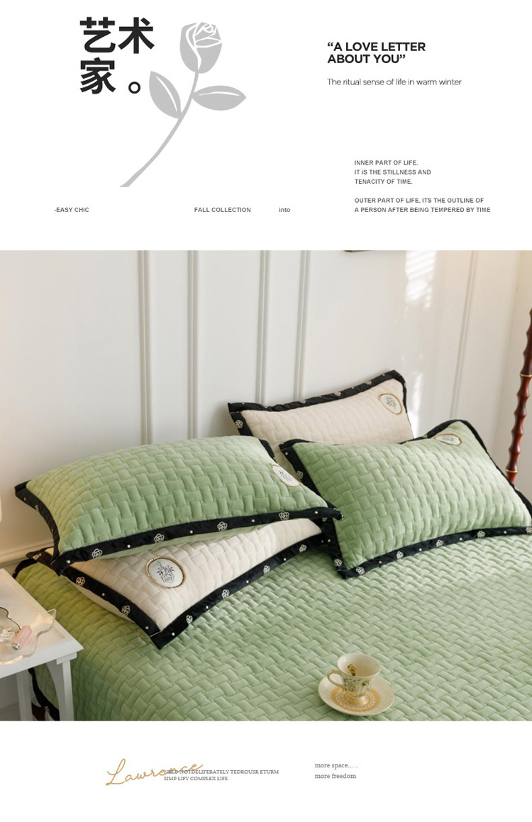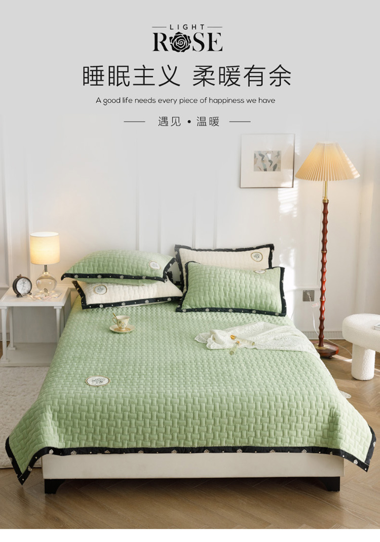 菊上家纺 2022新款牛奶绒单床盖-小香玫瑰 小香绿