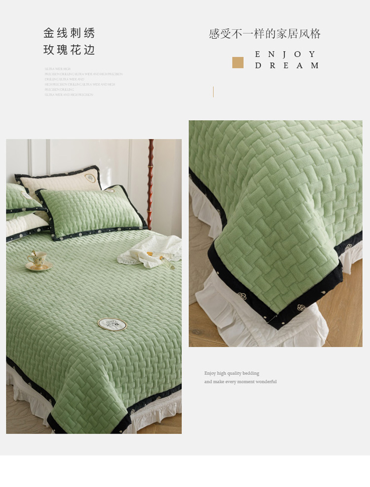 商品名称:菊上家纺 2022新款牛奶绒单床盖-小香玫瑰 小香绿