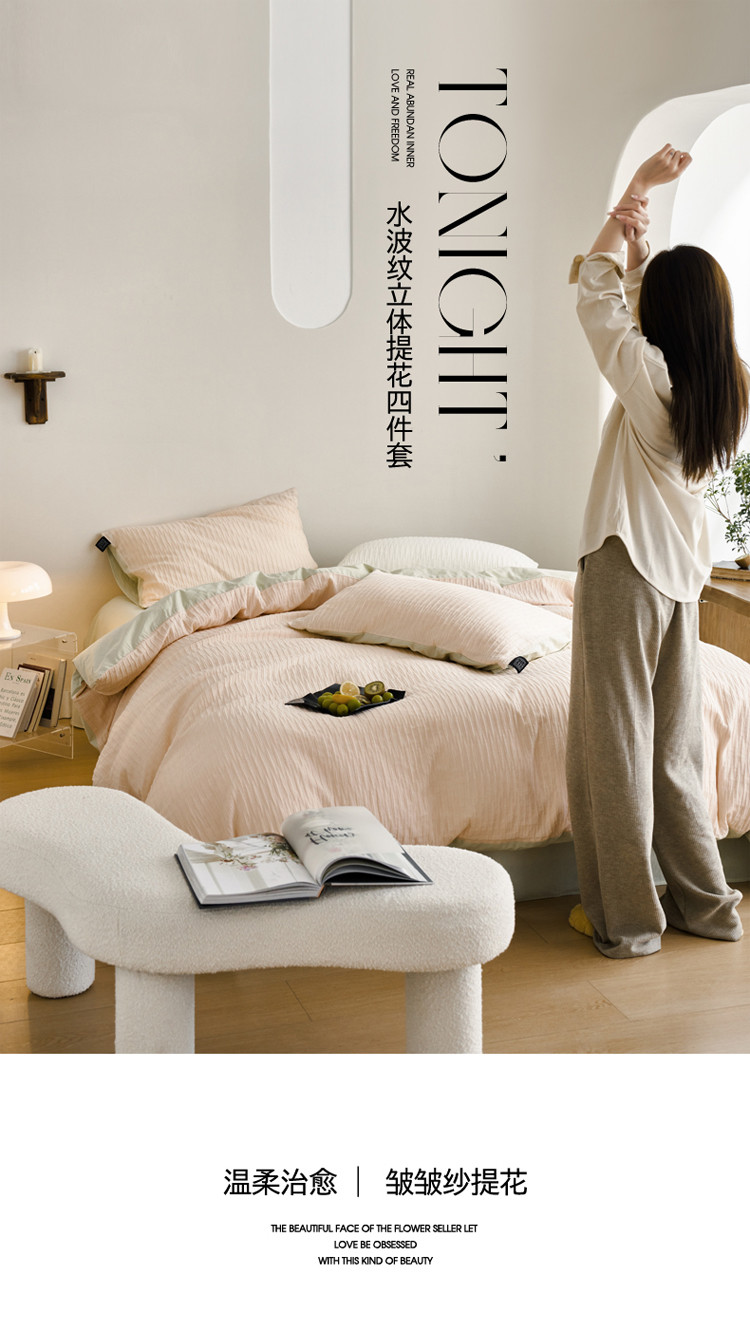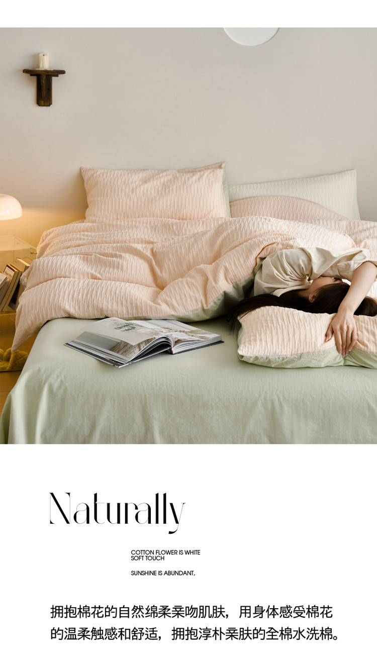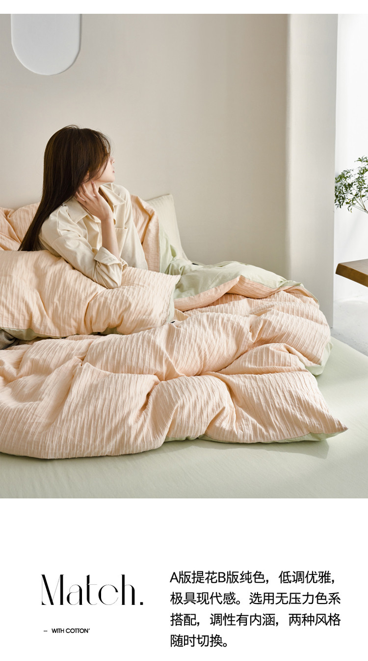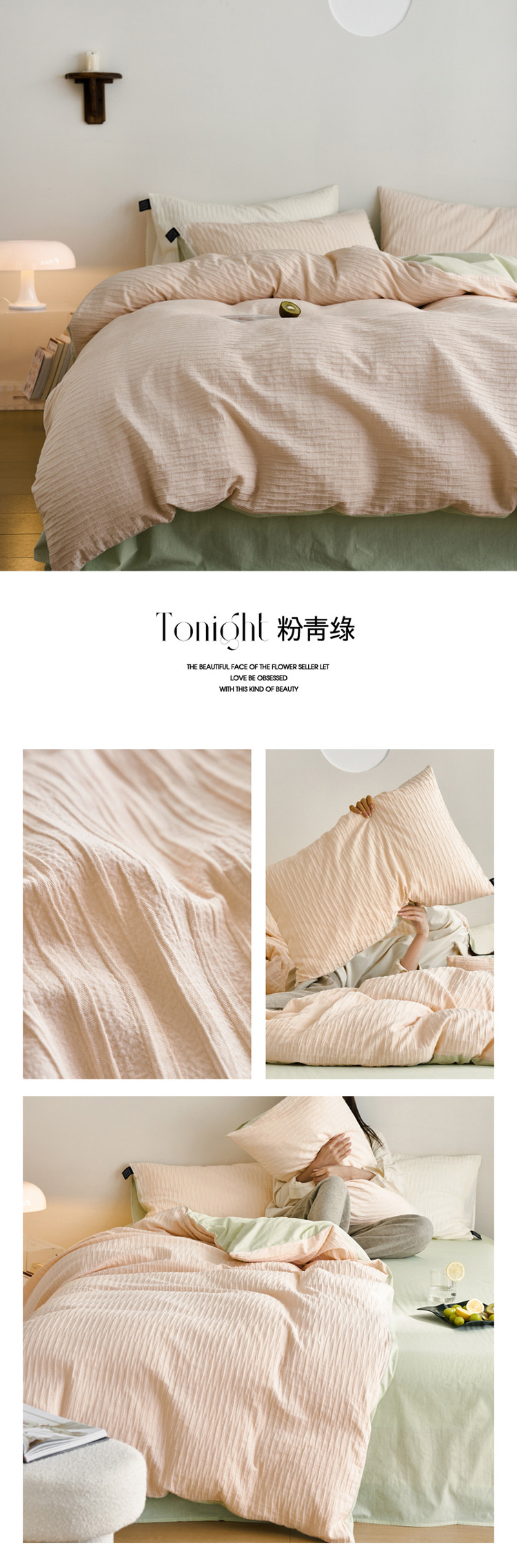 当前位置: 91家纺网 > 商品网购 > 床品套件 > 四件套 > 全棉普通四件套 > 风向标家纺 2023新款泡泡纱水洗立体提花全棉四件套 泡泡纱-粉青绿