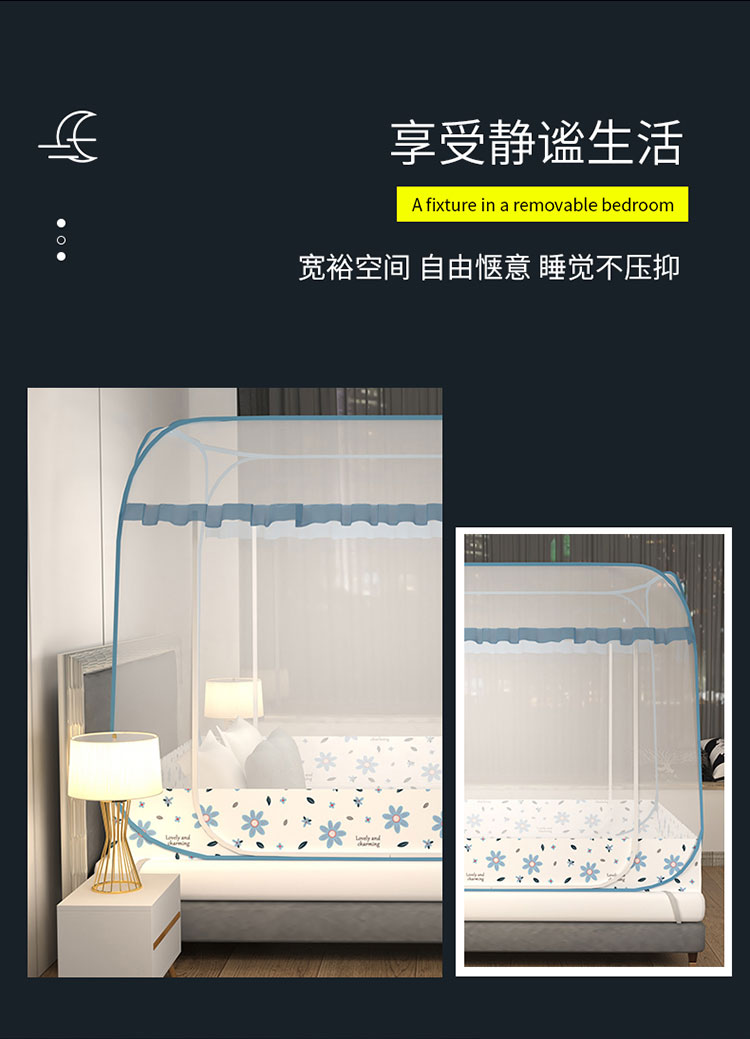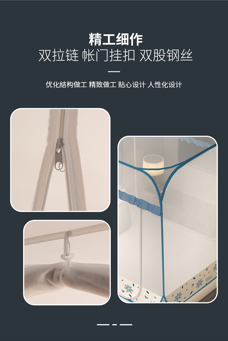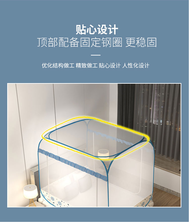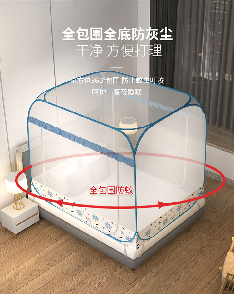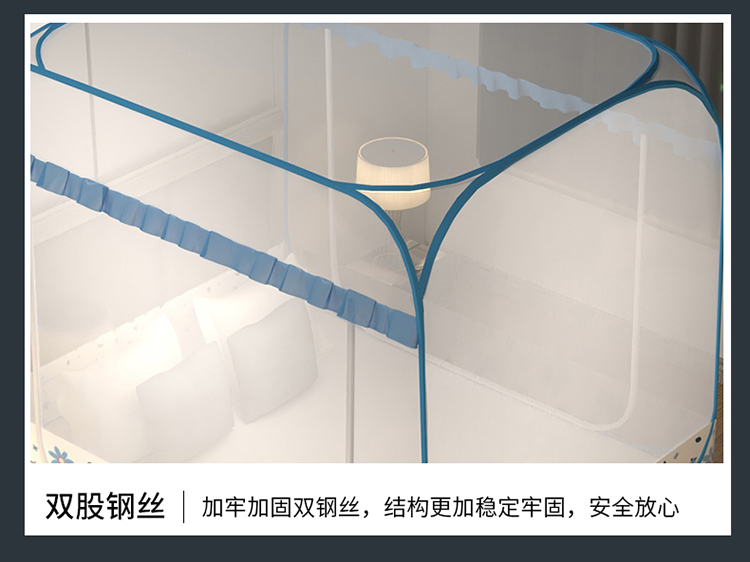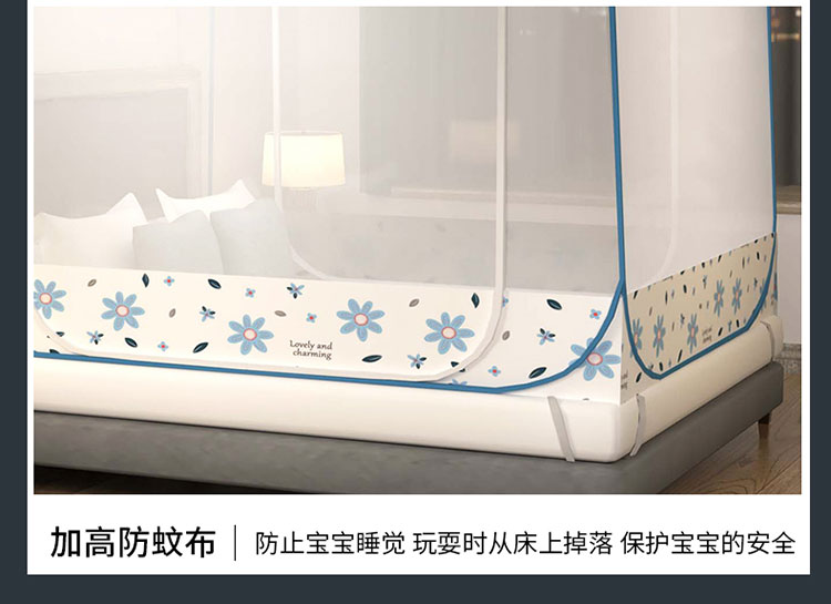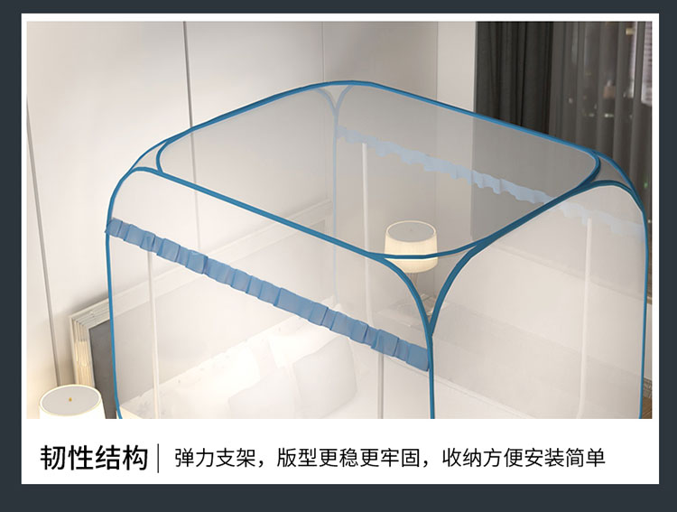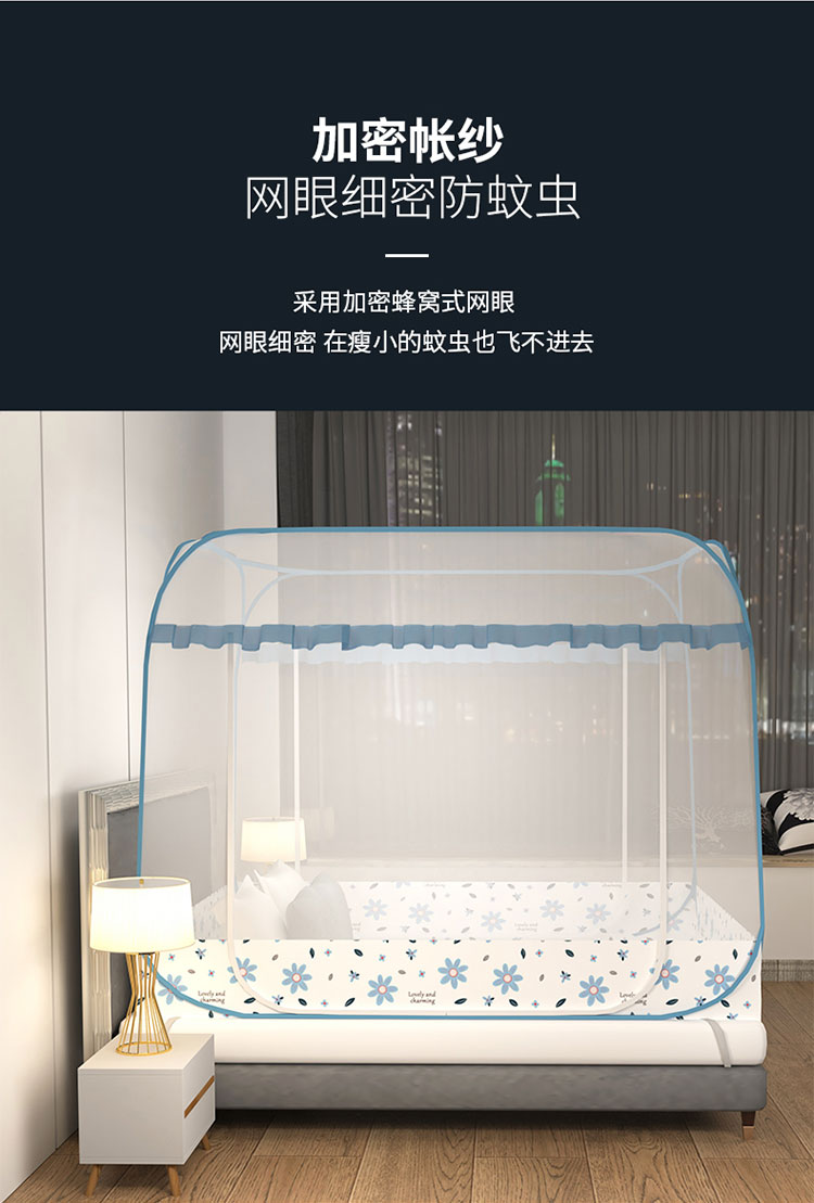 商品名称:青竹苑 2023新款大方顶魔术蚊帐加大双开门免安装稳固全包围全底蚊帐 初恋蓝