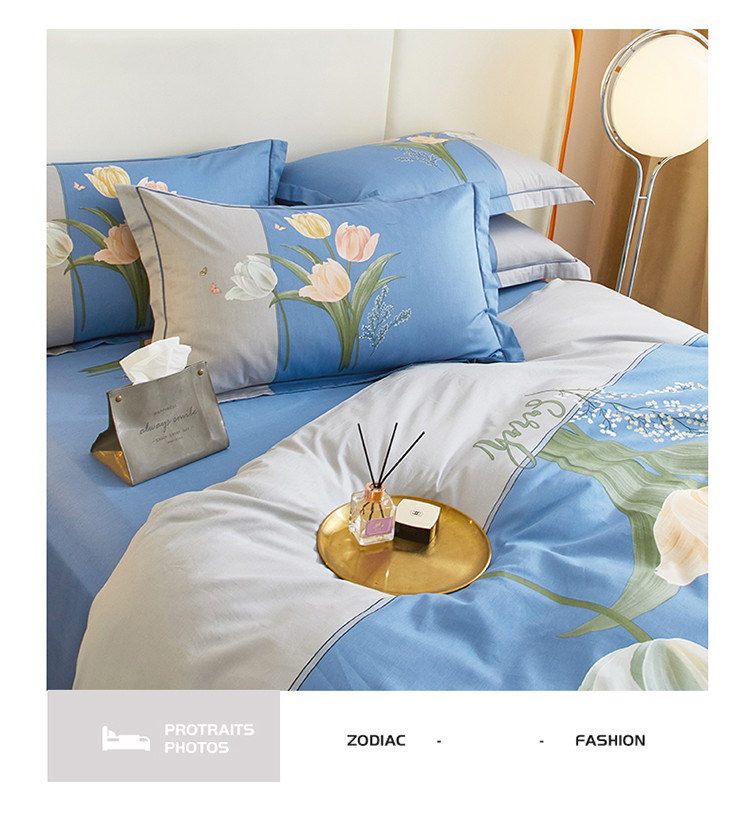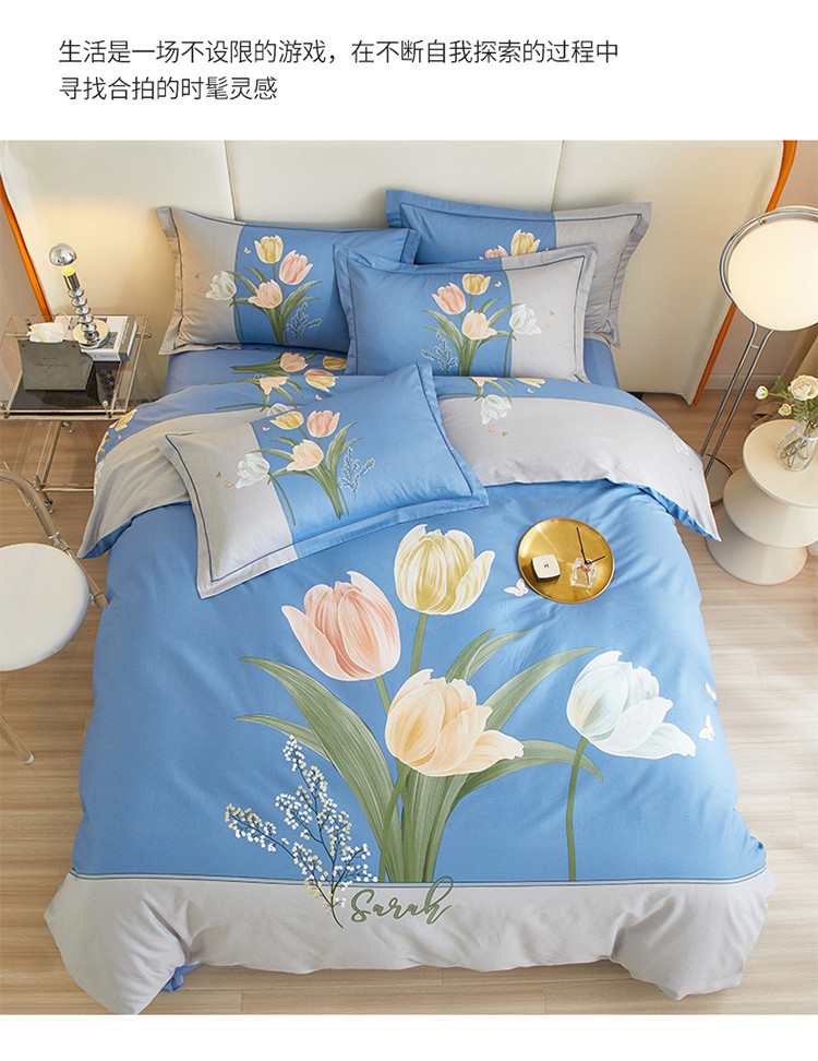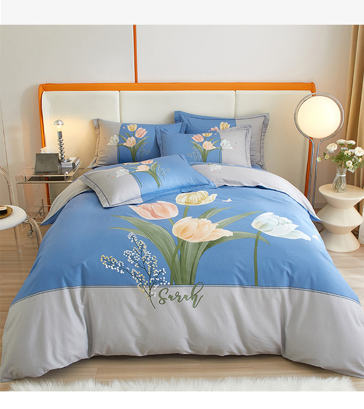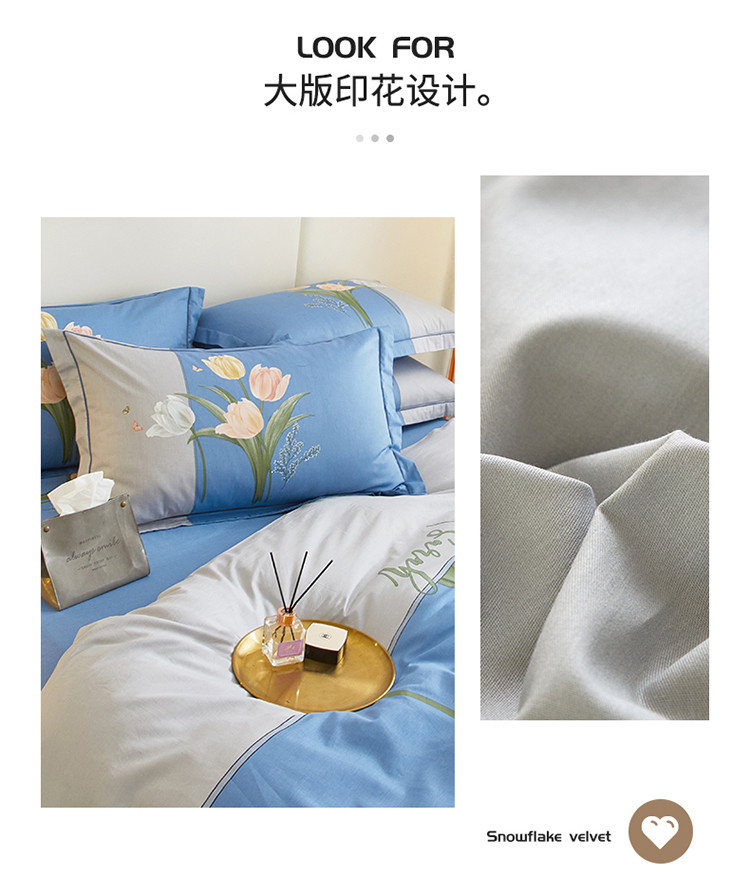 金纱玉纺家纺 2024新款全棉大版印花13372四件套 浪漫柔情--蓝