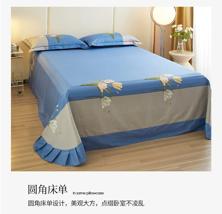 商品名称:金纱玉纺家纺 2024新款全棉大版印花13372四件套 浪漫柔情--蓝