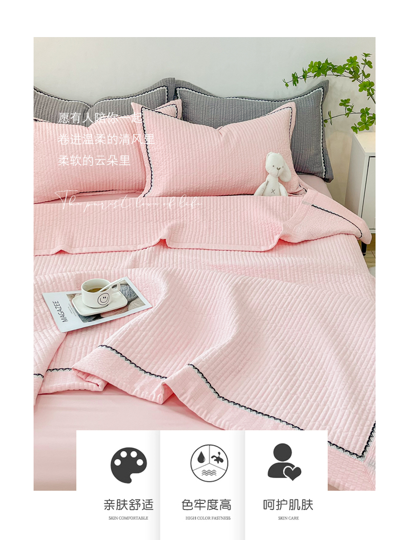 当前位置: 91家纺网 > 商品网购 > 床品套件 > 四件套 > 夏被四件套 > 乐卧 2026新款雅韵蕾丝花边手工花卉夏凉被四件套 樱花粉-简版