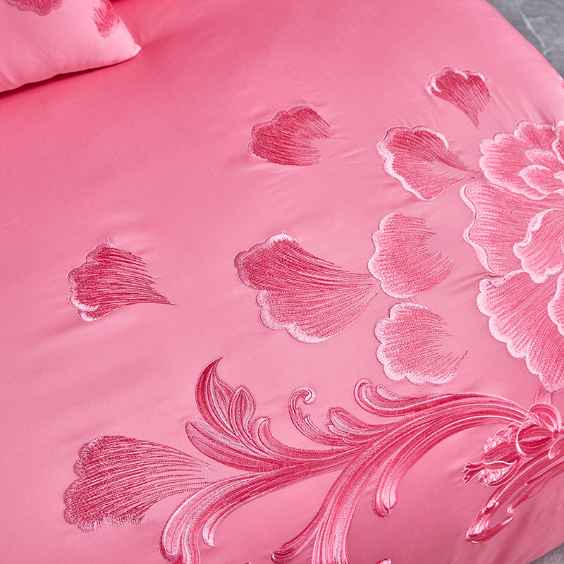商品名称:高大尚 2023新款长绒棉奢华婚庆多件套系列-甜甜蜜蜜(粉) 床盖款六件套