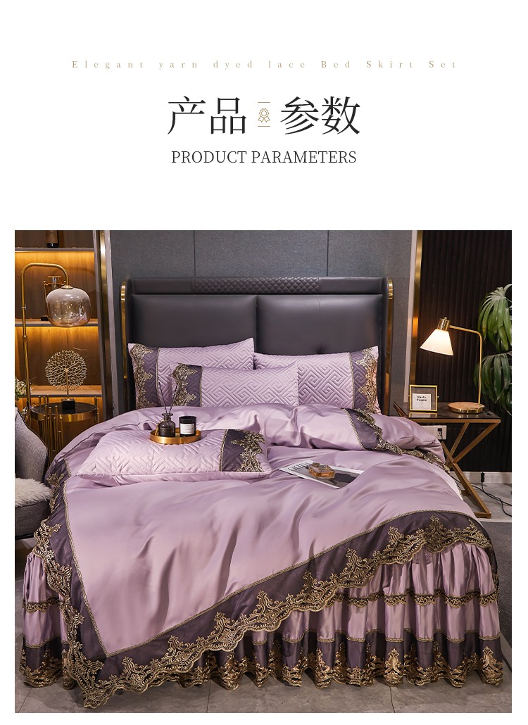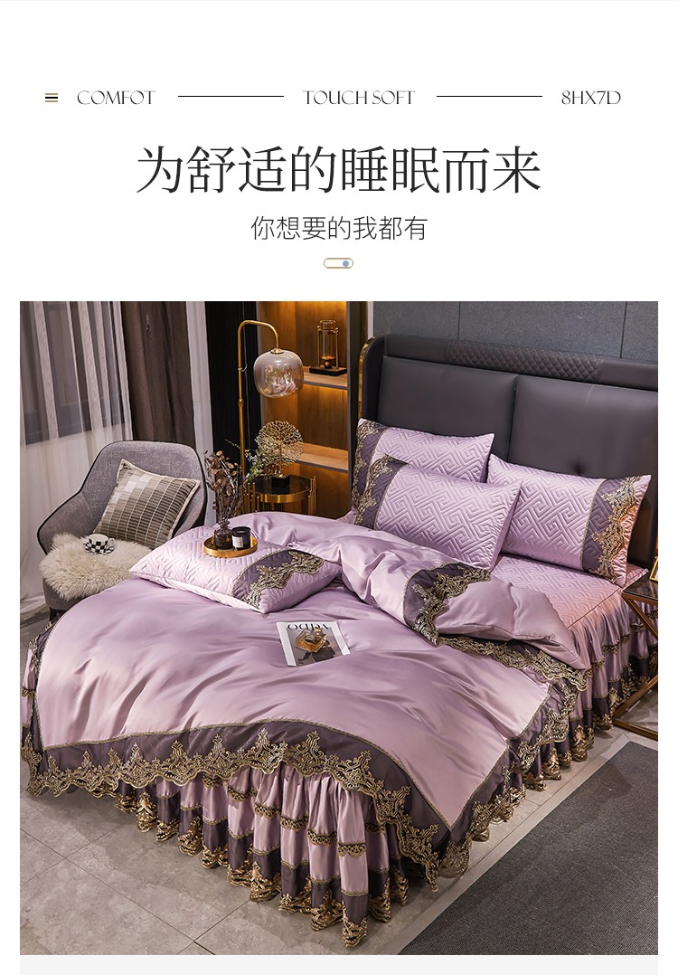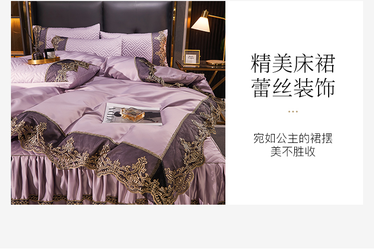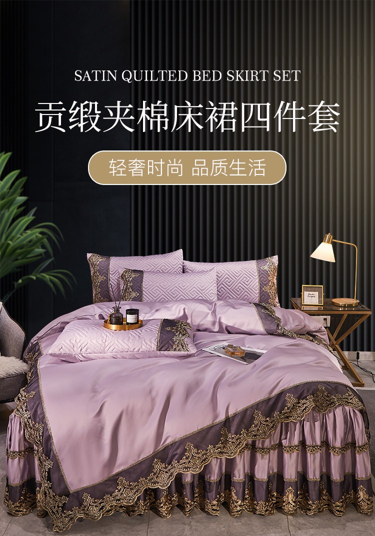 • 91家纺网 家纺一手货源 找家纺 罗艺轩 2024新款贡缎夹棉床裙四件套凯撒王朝系列 凯撒王朝-黛紫