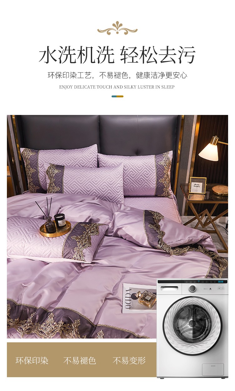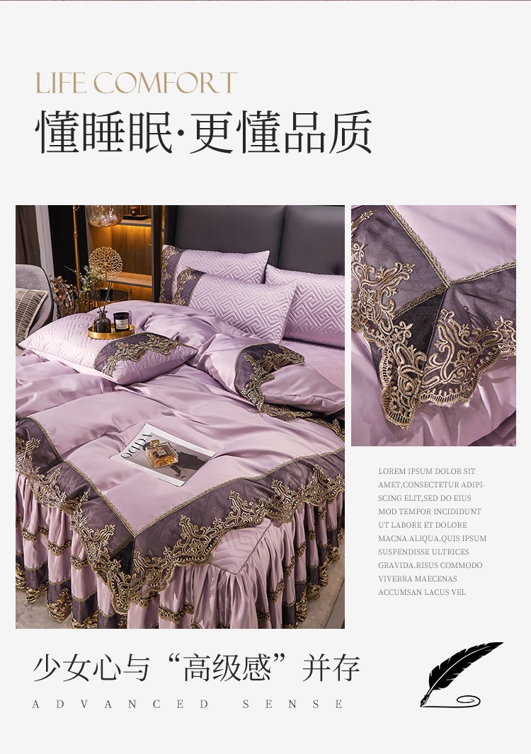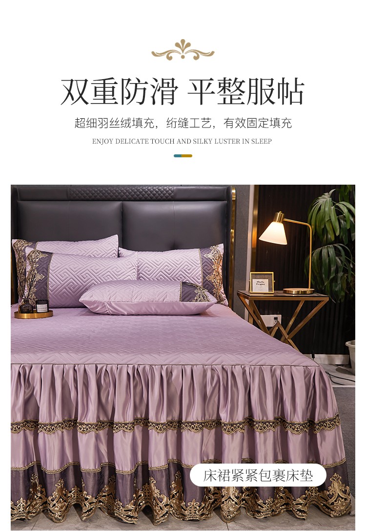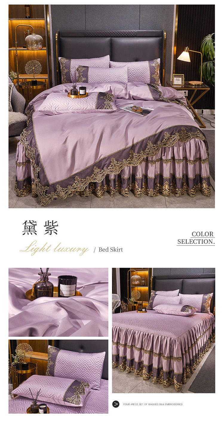 • 91家纺网 家纺一手货源 找家纺 罗艺轩 2024新款贡缎夹棉床裙四件套凯撒王朝系列 凯撒王朝-黛紫