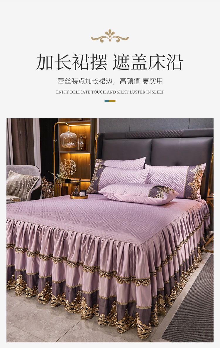 罗艺轩 2024新款贡缎夹棉床裙四件套凯撒王朝系列 凯撒王朝-黛紫