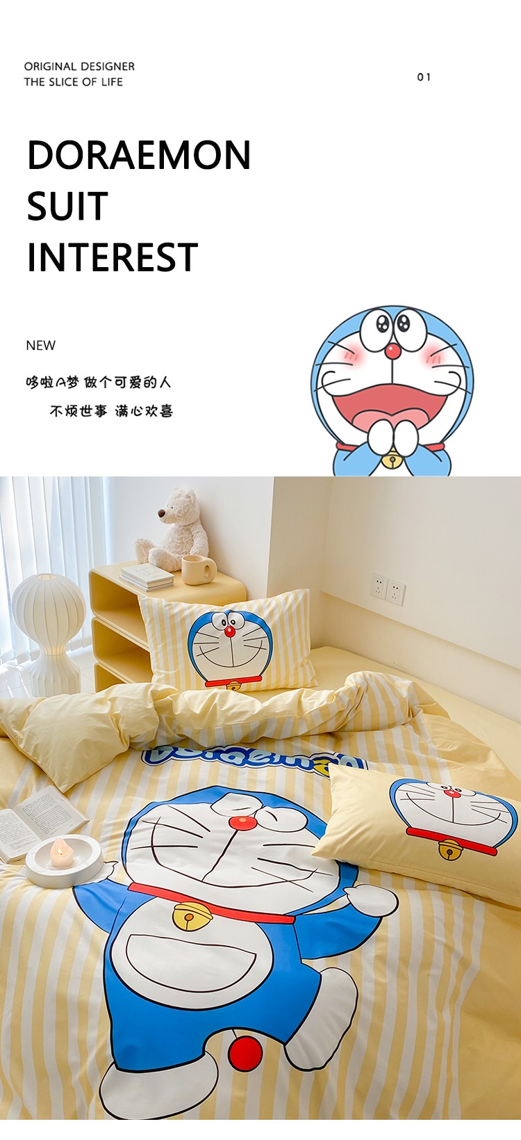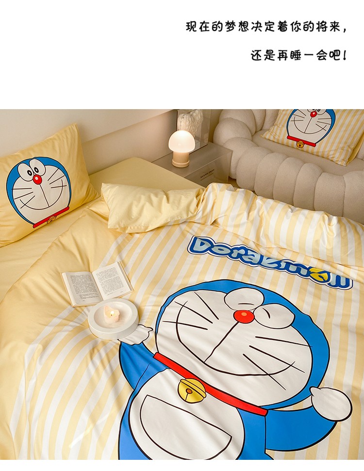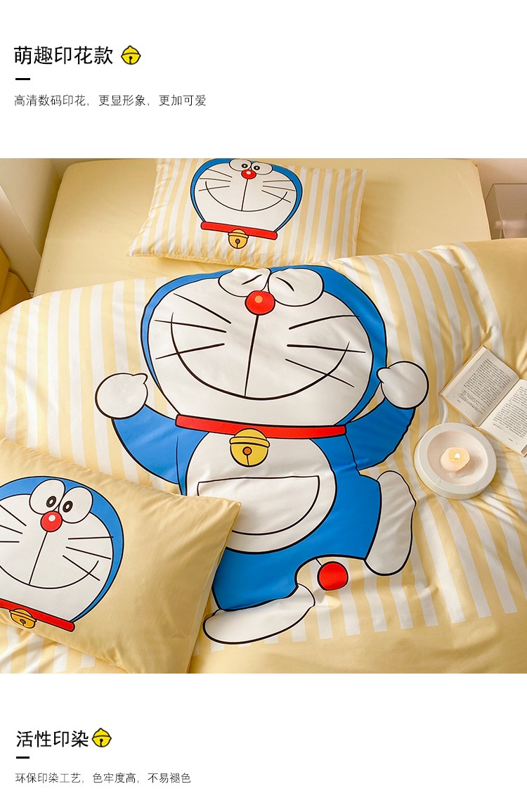 正版授权哆啦A梦纯棉四件套 数码印花大版卡通床单被套三件套叮当猫