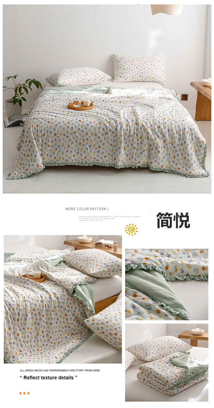 (总)有货 2023新款小清新花边韩版水洗棉麻豆豆夏被简约复古风,枫情,格格,绿野,绿意,南风,暖心,森林,盛开,太空,微笑,向阳花,小鹿,枝丫