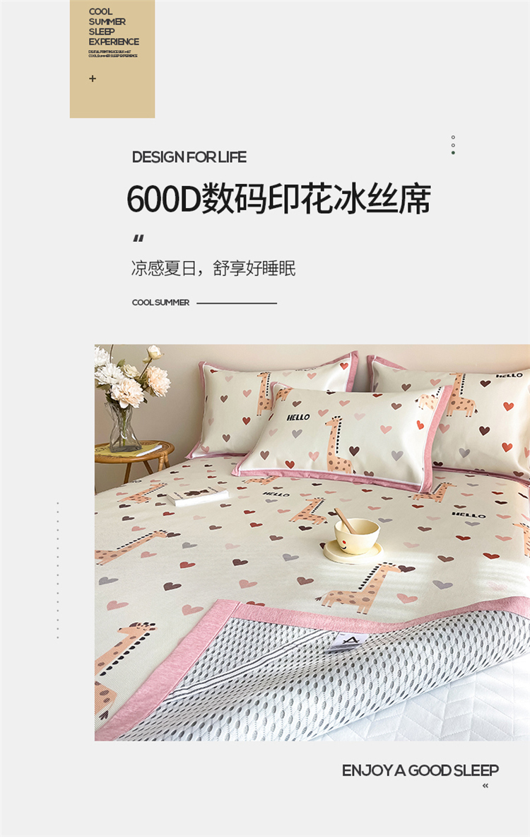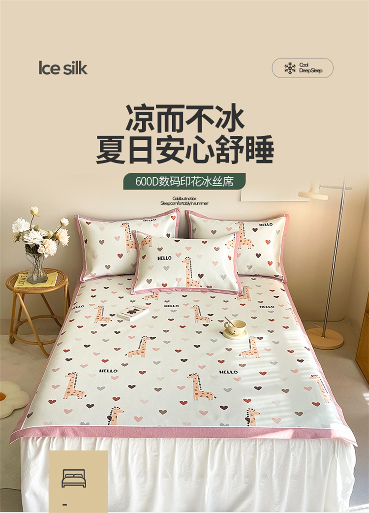 懒猫 2024新款600D数码印花冰丝席 小欢喜