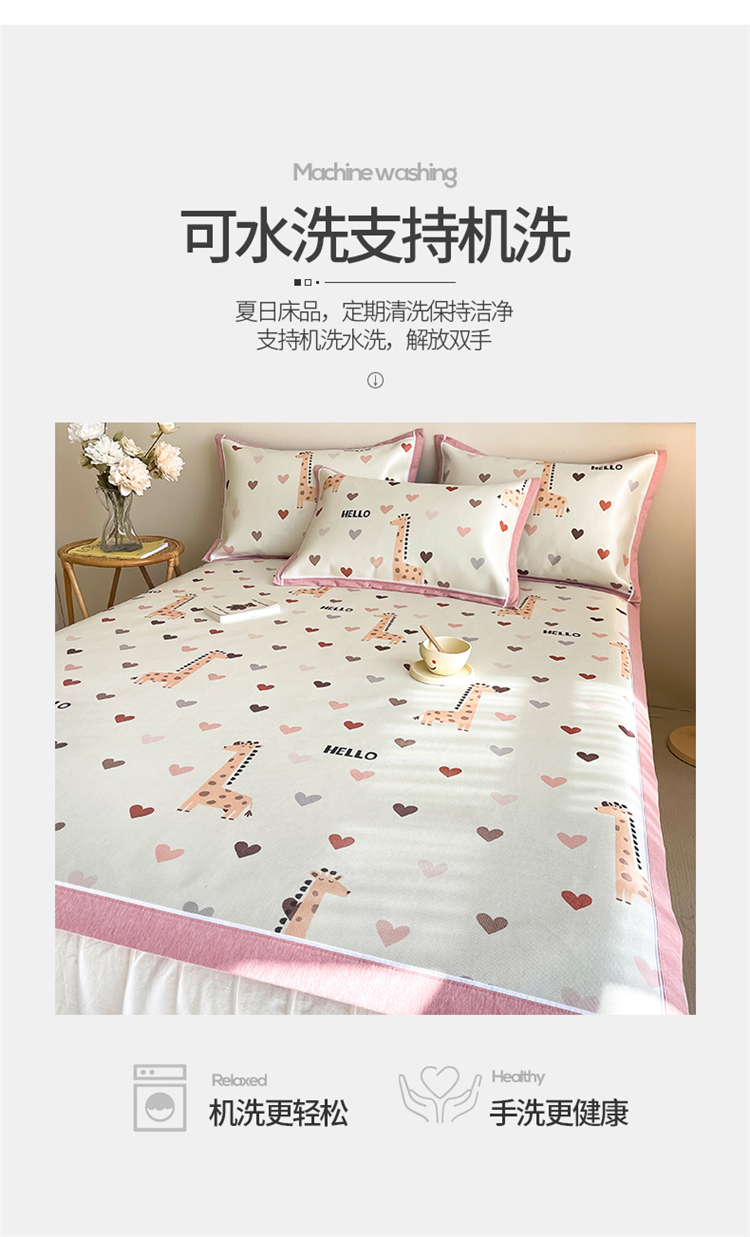 (总)懒猫家纺 2022新款学生宿舍冰丝数码印花凉席,尔雅,粉小兔,花韵,萝卜兔,清晨,手绘爱心,探索星球,甜心,小鲸鱼,小熊仔,元气兔